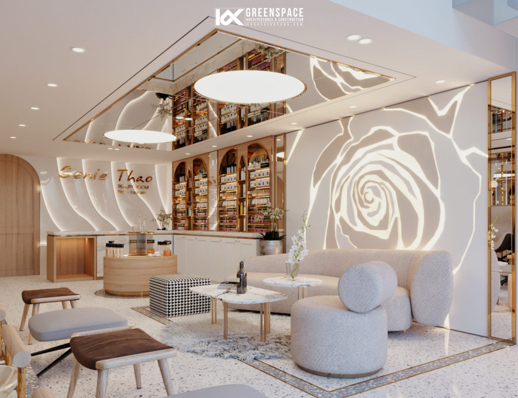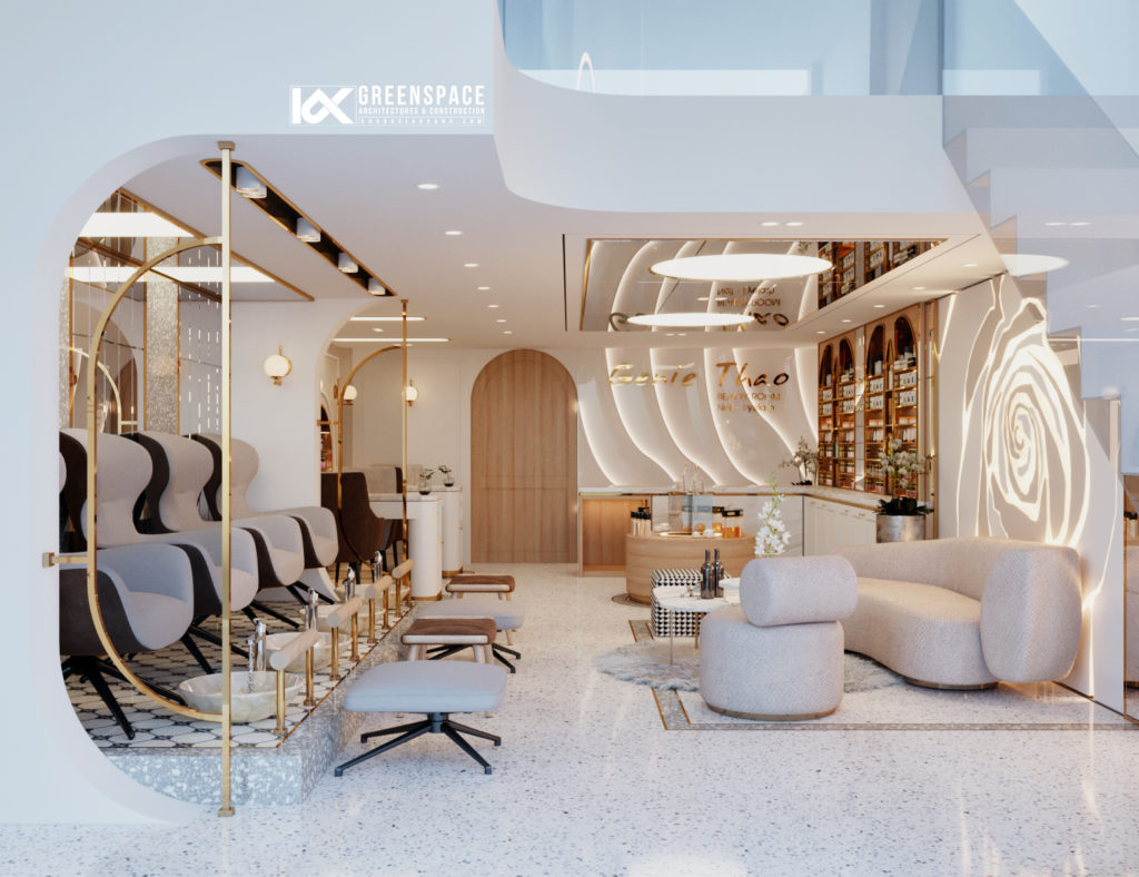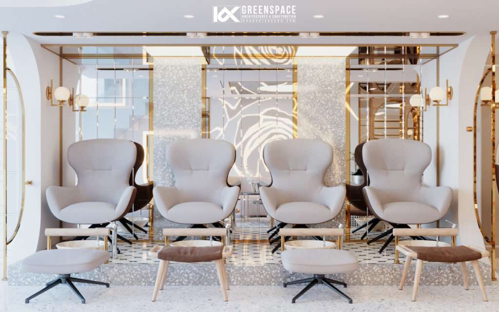 Dự án thiết kế tiệm Nail Spa kết hợp khu nhà ở được triển khai với phong cách sang trọng đẳng cấp, sử dụng tone màu gold chủ đạo tạo nên một concept độc đáo đẹp mãn nhãn…, dự án do đội ngũ Kiến trúc Không Gian Xanh Đà Nẵng ký hợp đồng thiết kế trọn gói, công trình dự kiến hoàn thành trong năm 2020…