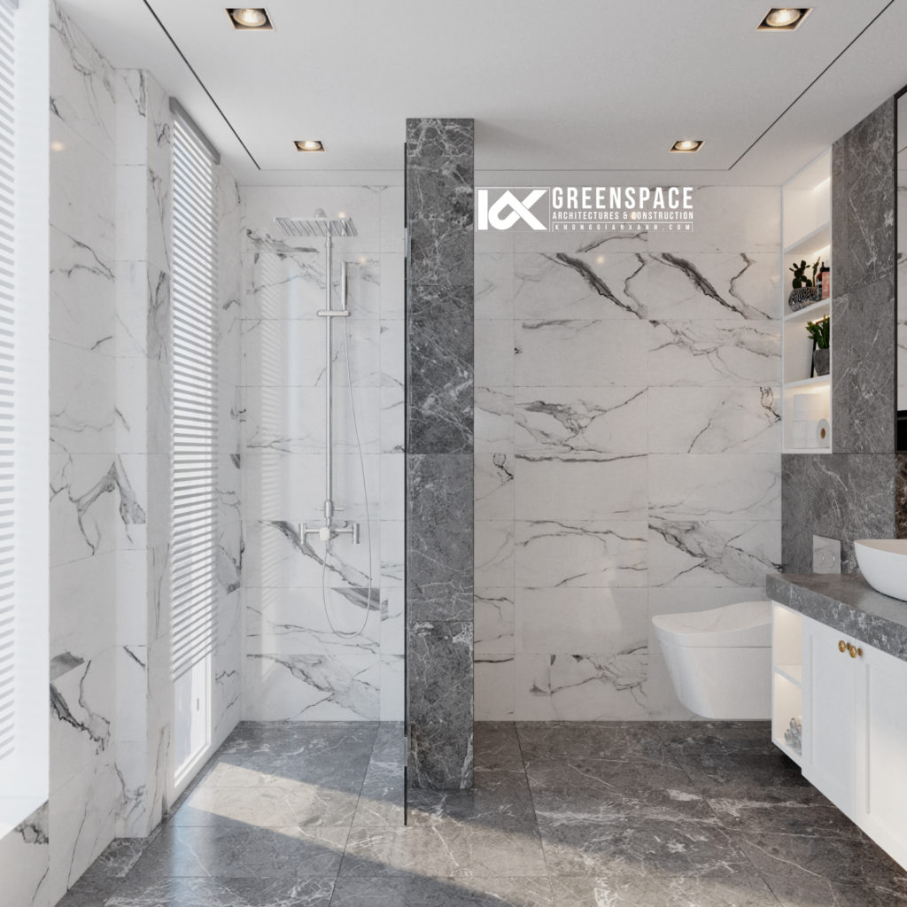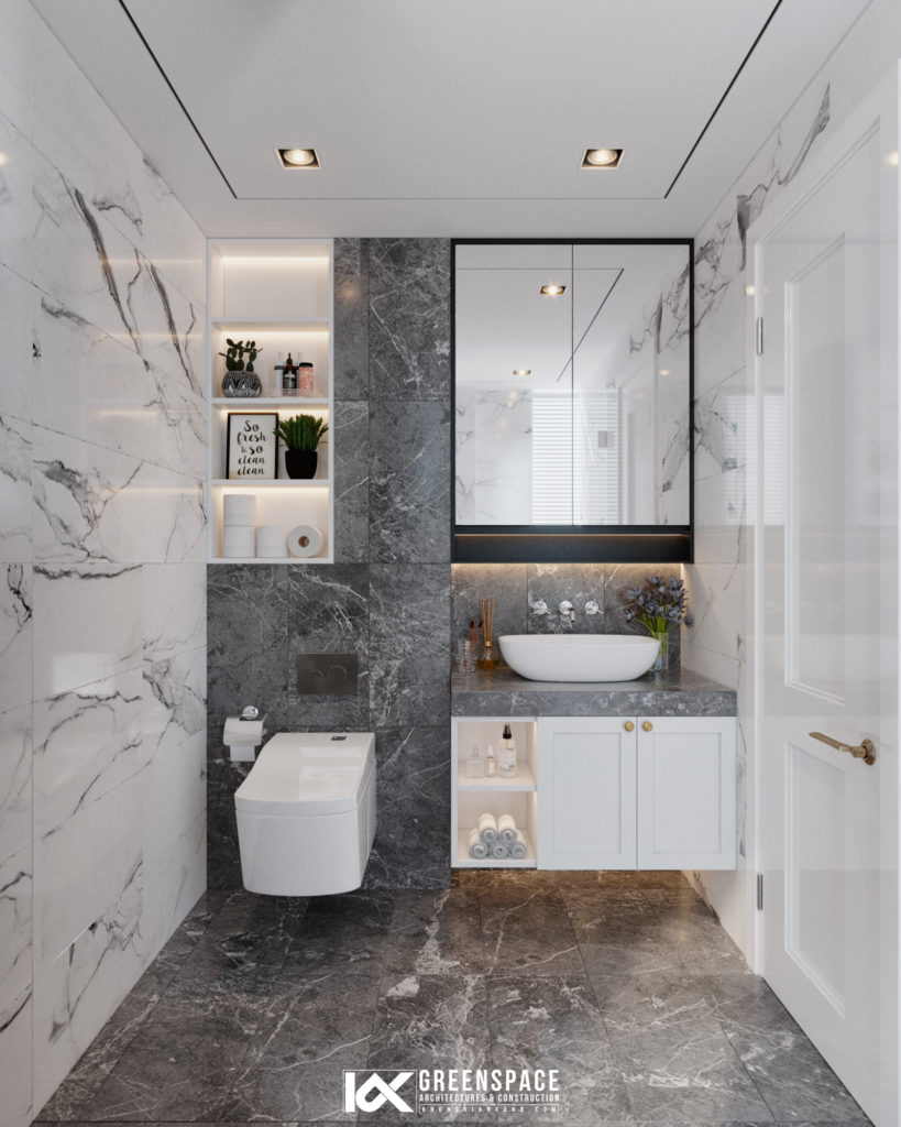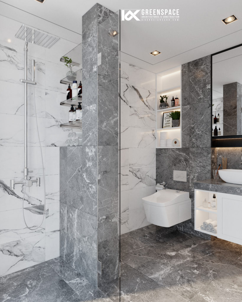 WC sang trọng với sự kết hợp tinh tế các họa tiết vân đá