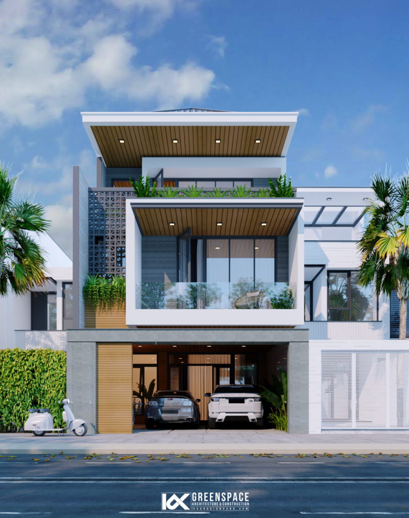 Tọa lạc trên một con phố nhỏ của TP Vũng Tàu, dự án thiết kế nhà ở 3 tầng hiện đại được triển khai trên mảnh đất rộng 120m2, bài toán đặt ra là giải quyết vấn đề công năng và tối ưu thông gió lấy sáng cho công trình, hướng đến phong cách kiến trúc hiện đại tinh tế… Dự án do đội ngũ Kiến trúc Không Gian Xanh Vũng Tàu thực hiện mang đến một Concept tối ưu, giá trị thẩm mỹ cao…