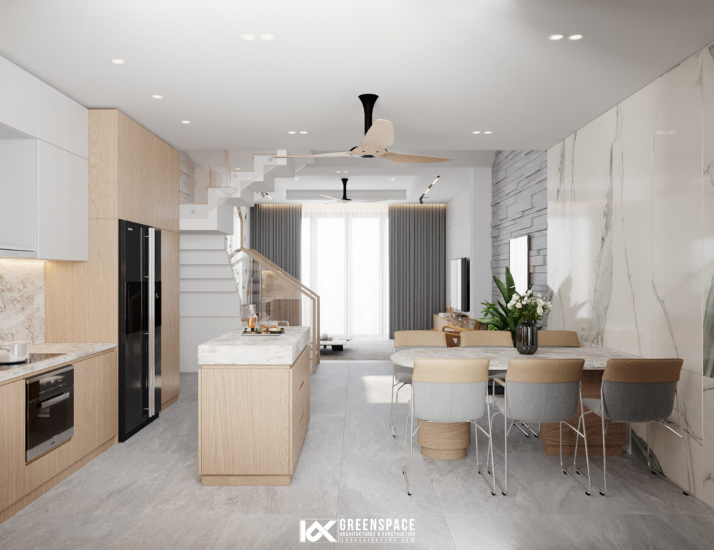 Dự án thiết kế nội thất nhà phố tối giản được triển khai cho một gia đình trẻ yêu thích nét đẹp đơn giản gọn gàng và sự tinh tế của không gian. Sử dụng gam màu sáng nhẹ nhàng dự án đã mang đến những không gian trong trẻo, thư giãn kết nối với sự bình yên và tự do của bản thân con người sống trong nó… Dự án do đội ngũ Kiến trúc Không Gian Xanh Đà Nẵng triển khai thiết kế và dự kiến hoàn thiện trong năm 2021…