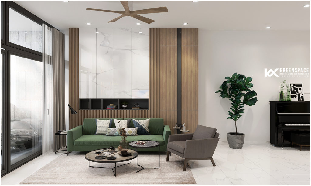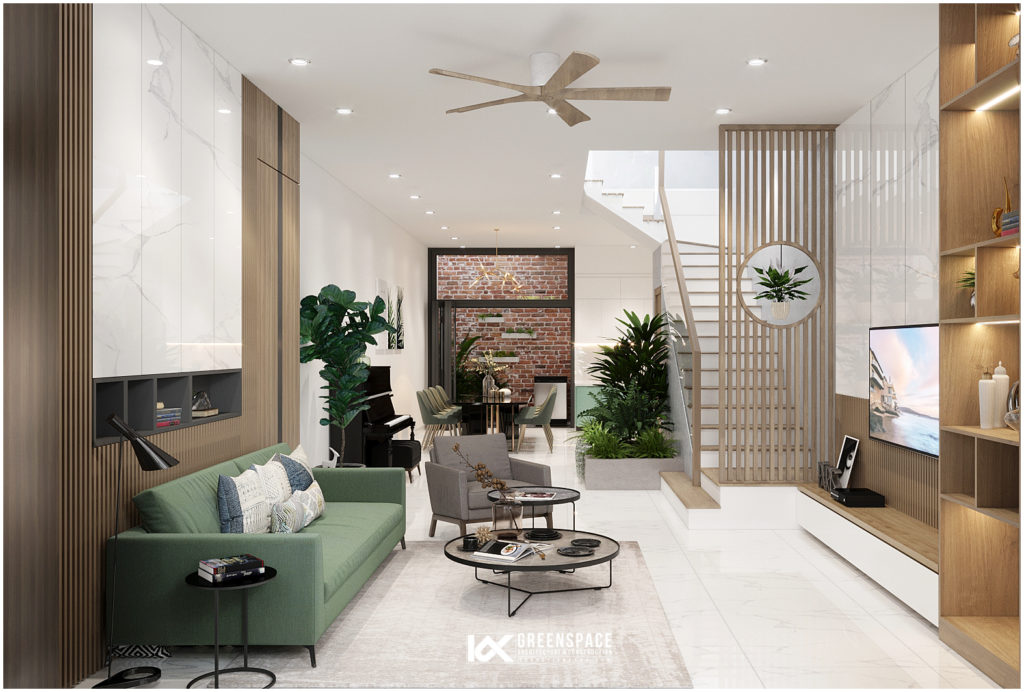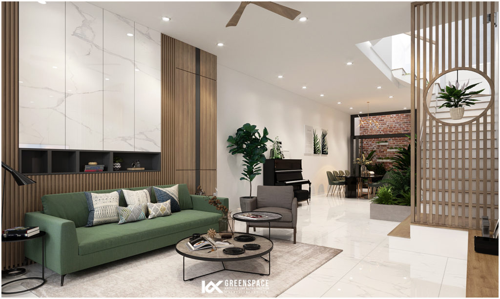 Với gam màu xanh lá mát mẻ dự án thiết kế nội thất nhà phố rộng 85m2 đã mang đến những không gian bình yên cho một gia đình nhỏ, là nơi nghỉ ngơi thư giãn sau một ngày dài học tập làm việc mệt mỏi, tận hưởng những cảm xúc hạnh phúc quây quần bên nhau… Dự án do Kiến trúc Không Gian Xanh Vũng Tàu thực hiện và đang trong quá trình trình duyệt phương án …