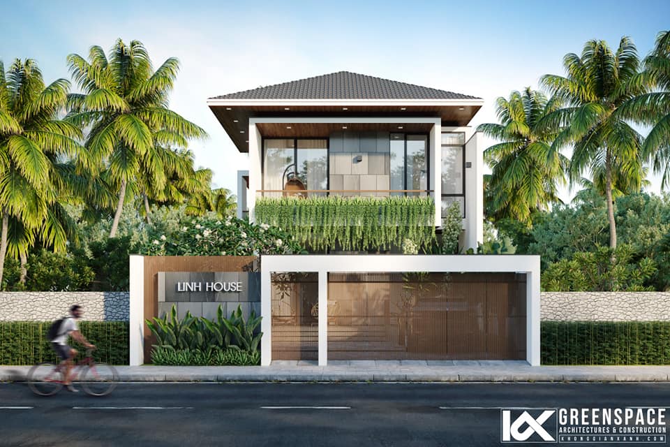 Phương án thiết kế theo phong cách hiện đại mang một vẻ ngoài thư giãn với những khoảng vườn hông rộng rãi, những mảng cây xanh được bố trí làm điểm nhấn xanh trong công trình.