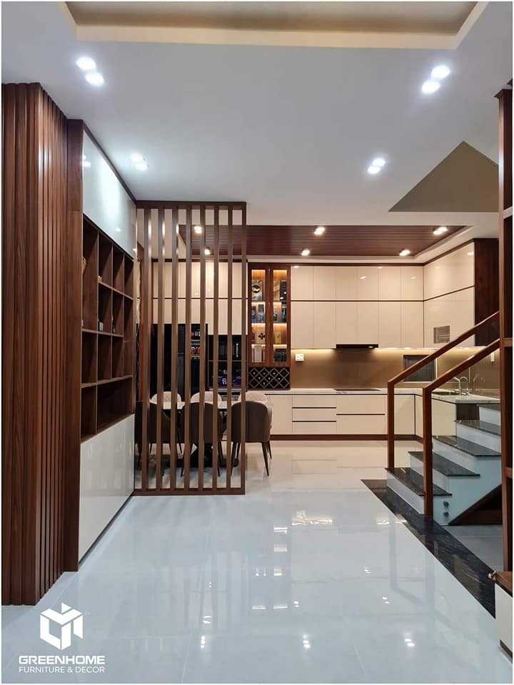 Luôn tỉ mỉ, chỉn chu và tinh tế từ thiết kế đến sản xuất hoàn thiện nhằm đạt được chất lượng công trình tốt nhất. Dự án thiết kế thi công nội thất nhà phố do chị Lương làm chủ đầu tư được thiết kế với phong cách hiện đại và được sản xuất lắp đặt hoàn thiện bởi xưởng nội thất chuyên nghiệp của GreenHome