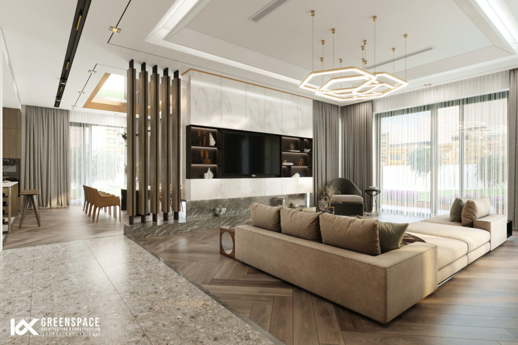 Dự án thiết kế nội thất biệt thự vườn 180m2 với quy mô 2 tầng 3 phòng ngủ và đầy đủ các phòng chức năng. Chủ nhà yêu thích nét đẹp phóng khoáng đơn giản của phong cách hiện đại, đồng thời cũng muốn có những không gian riêng tư sang trọng tinh tế của phong cách tân cổ điển… Dự án do đội ngũ Kiến trúc Không Gian Xanh Vũng Tàu thực hiện mang đến những không gian hài hòa đáp ứng nhu cầu sống của gia chủ…