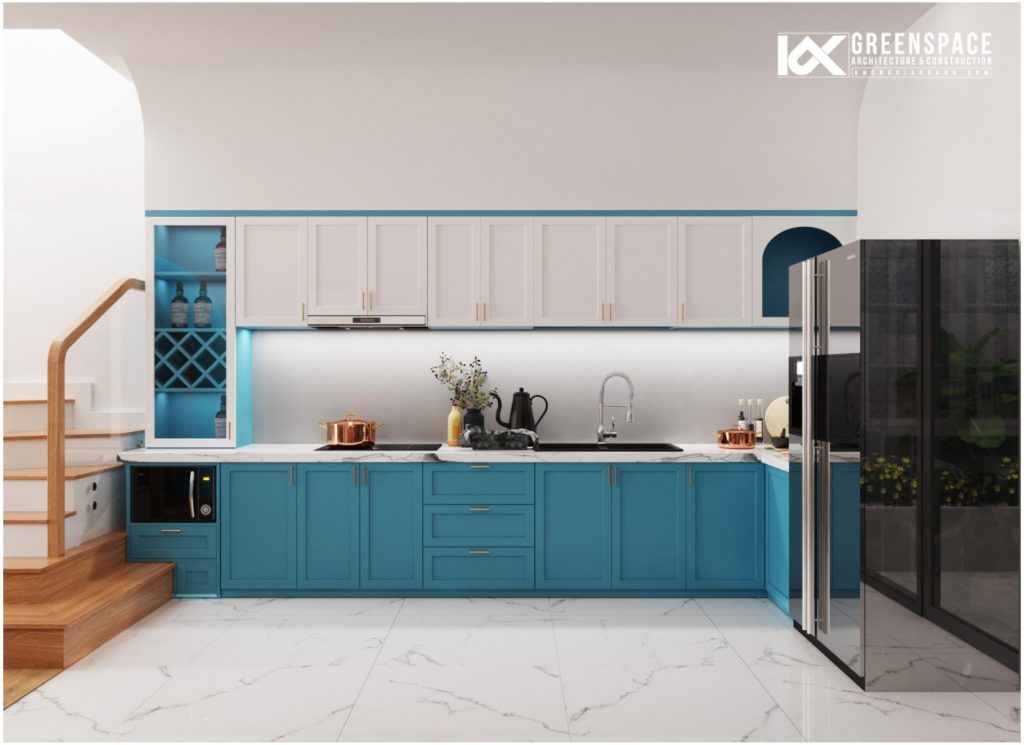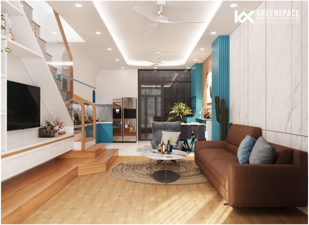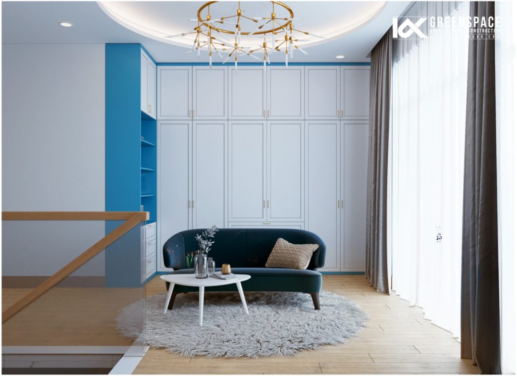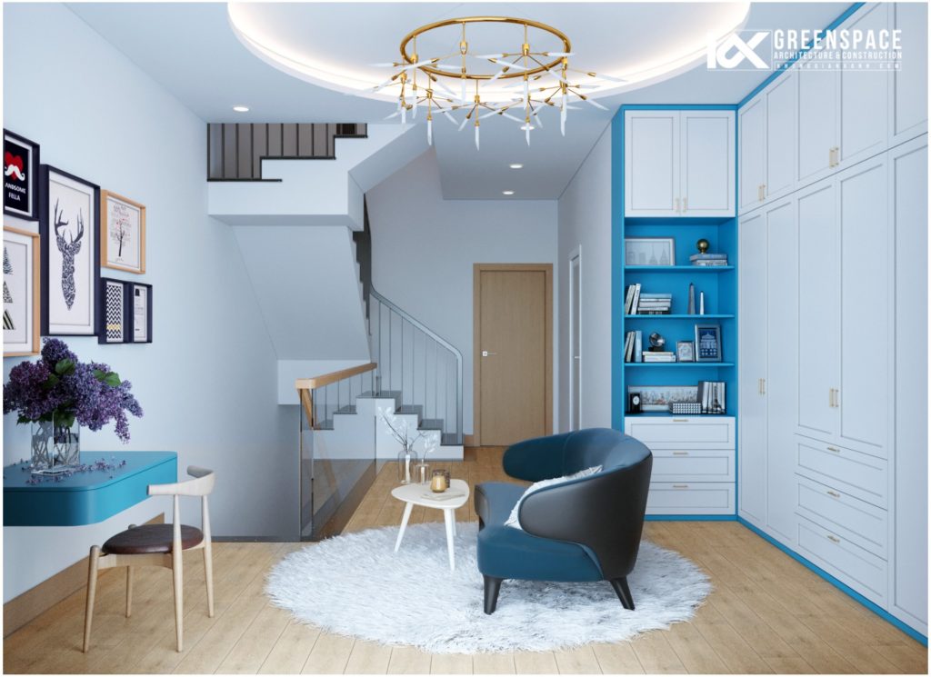 Nếu như kiến trúc ngôi nhà mang vẻ đẹp hiện đại, sang trọng thì nội thất bên trong lại được bố trí vừa đủ, tối ưu công năng hợp lý. Đặc biệt, nội thất nhà phố 4 tầng đẹp hiện đại tạo ấn tượng bởi sự xuất hiện của gam màu xanh dương. Sự nhất quán giữa các gam màu từ phòng khách, phòng bếp đến phòng ngủ. Để mỗi khi gia chủ trở về nhà, mọi áp lực và căng thẳng sẽ dừng lại trước cánh cửa. Chỉ có niềm vui, nụ cười và ấm áp, nụ cười, ấm áp của tình thân tràn ngập khắp gian phòng.