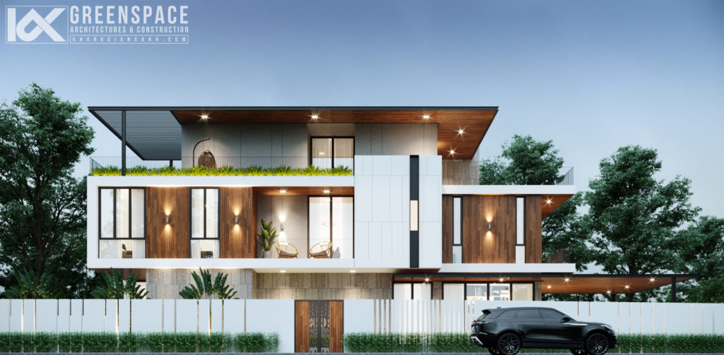 Mẫu biệt thự 3 tầng được thiết kế theo phong cách hiện đại, thiên về những đường nét khỏe khoắn, tự do nhờ những mảng, khối rõ ràng. Đồng thời, đội ngũ Kiến trúc sư Không Gian Xanh đã rất khéo léo khi bố trí công năng vừa đủ để đáp ứng nhu cầu sinh hoạt hàng ngày của gia đình.