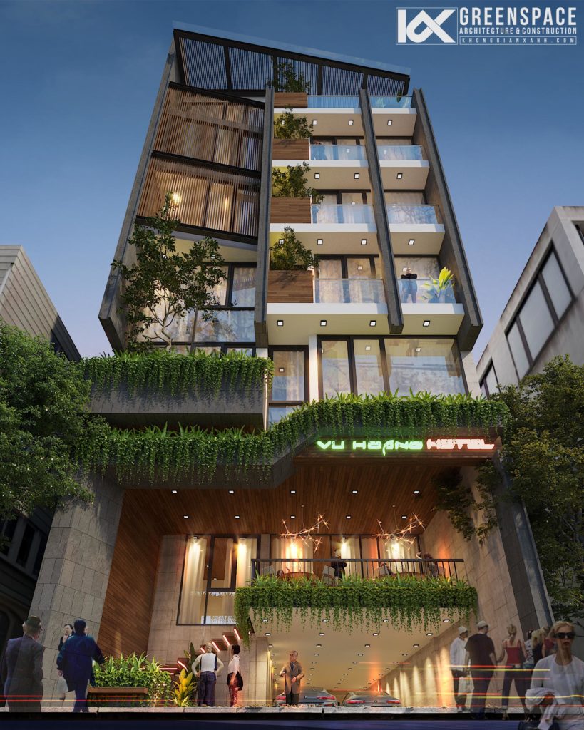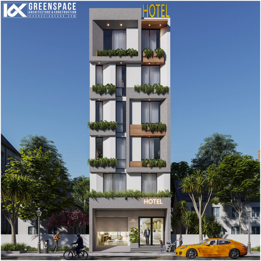 Khách sạn 6 tầng do Không Gian Xanh thiết kế