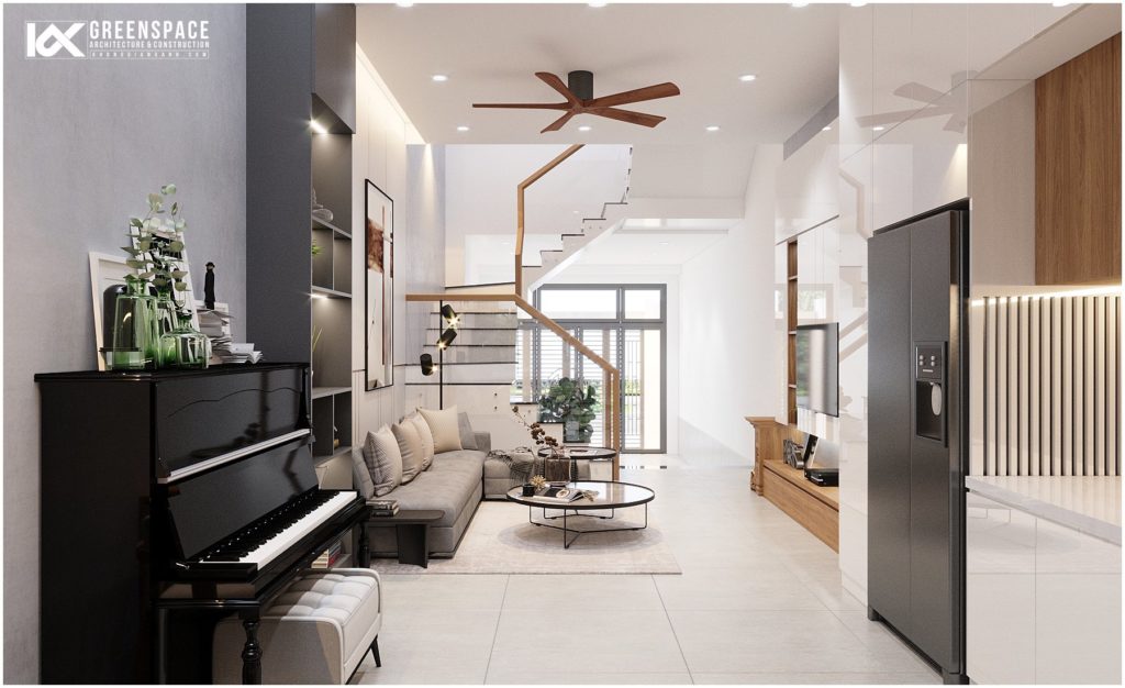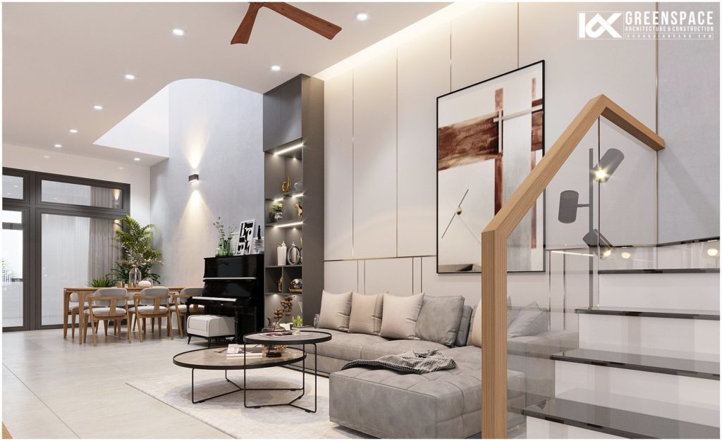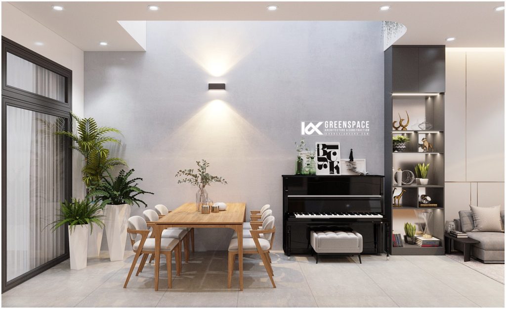 Gia chủ vốn là một người yêu thích âm nhạc. Chính vì thế, đội ngũ Kiến trúc sư Không Gian Xanh đã tinh tế khi bố trí cây đàn piano gần bộ sofa để các thành viên trong gia đình có thể thưởng thức những bản nhạc yêu thích.