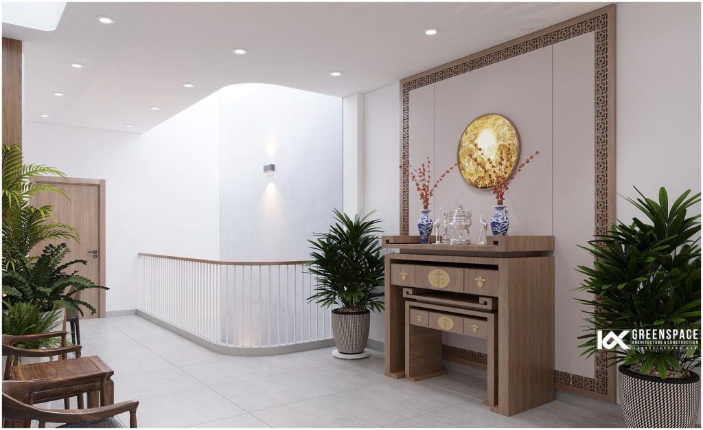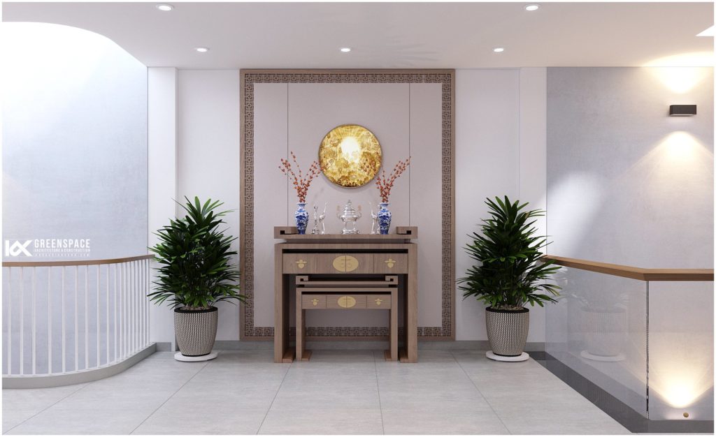 Phòng thờ kết hợp phòng sinh hoạt chung là một trong những xu hướng thiết kế khá phổ biến hiện nay. Bởi đây là giải pháp vừa tiết kiệm diện tích, vừa tiện nghi nhưng vẫn đảm bảo công năng.