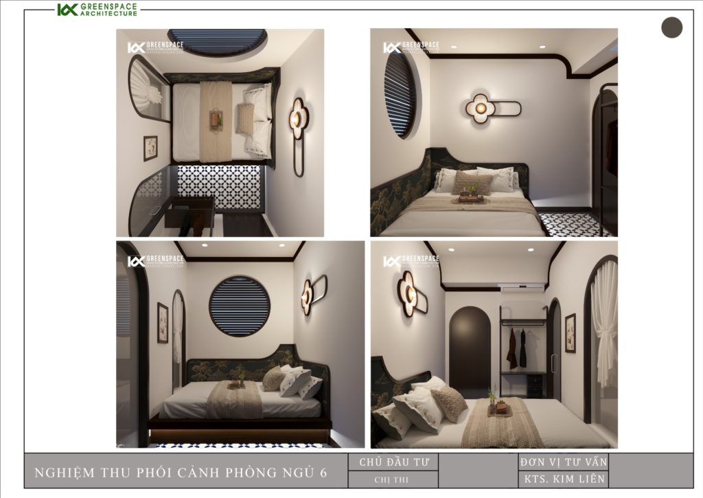 Phối cảnh nội thất phòng ngủ theo phong cách indochine