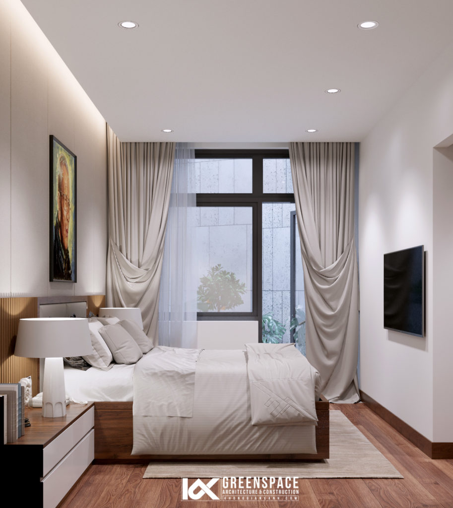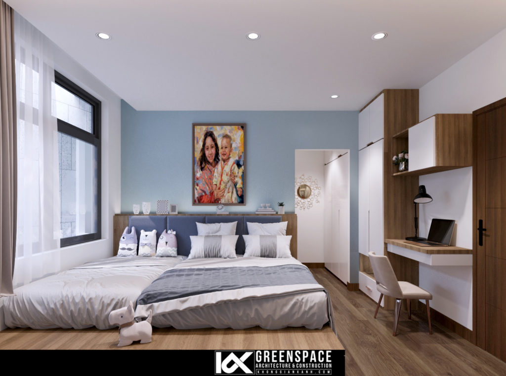 Nội thất 3 phòng ngủ được kiến trúc sư phân chia bố cục hợp lý, mang đến không gian lý tưởng. Đồng thời sử dụng gam màu nhẹ nhàng, mang đến sự thoải mái và tiện nghi nhất cho các thành viên trong gia đình.