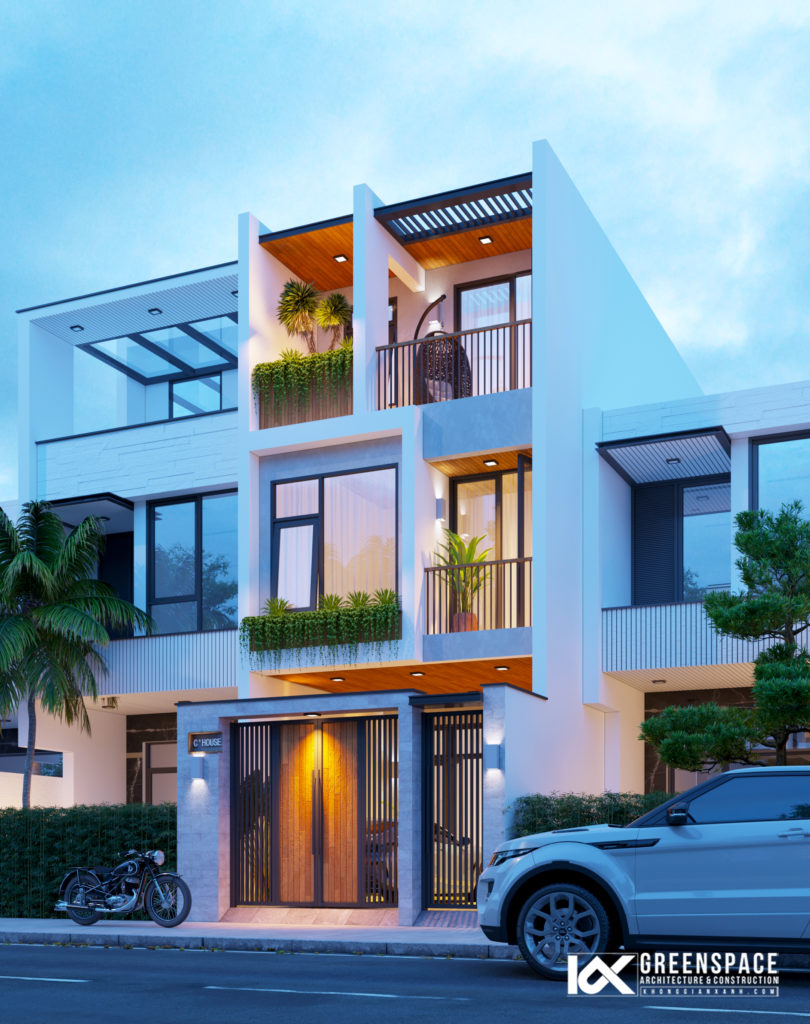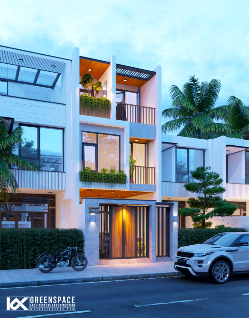 Trong các mẫu nhà phố của Không Gian Xanh thì cây xanh chính là yếu tố không thể thiếu. Cây xanh có tác dụng làm mát, tạo ra bầu không khí trong lành nhờ quá trình quang hợp. Bên cạnh làm tăng thêm yếu tố thẩm mỹ thì cây xanh còn có ý nghĩa tốt cho phong thủy.