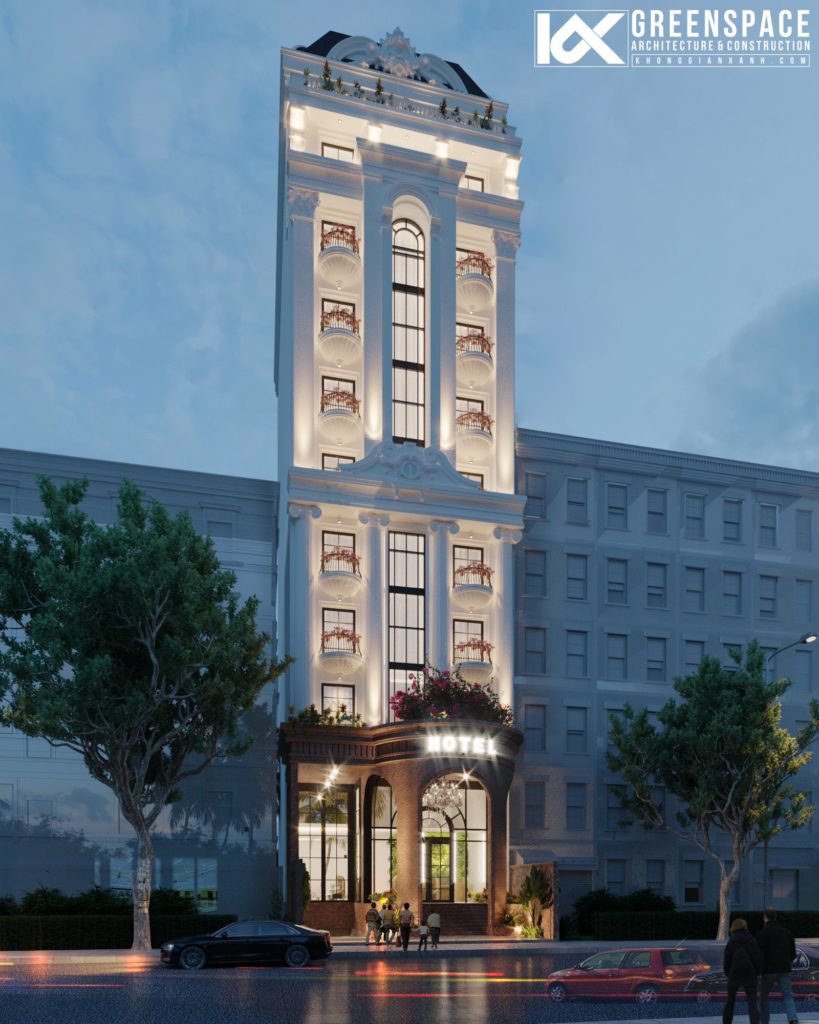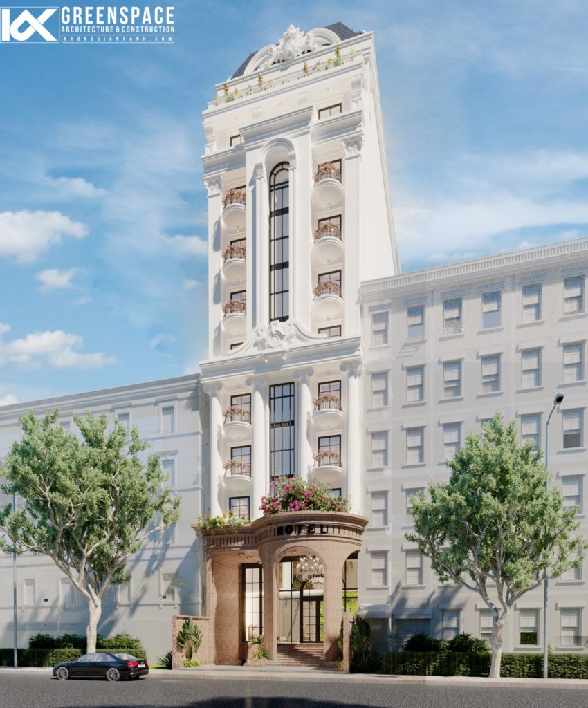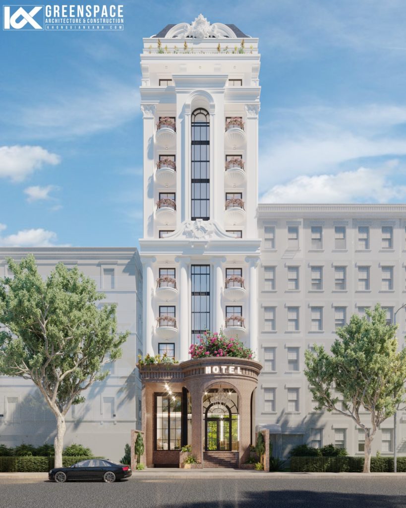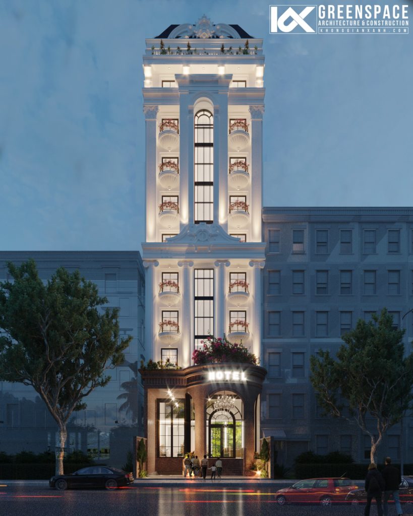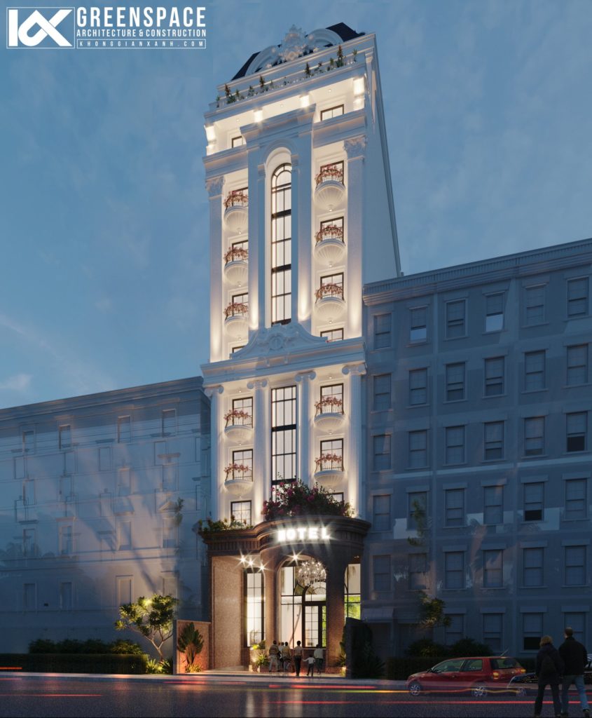 Kiến trúc Không Gian Xanh đã cho ra đời mẫu thiết kế khách sạn tân cổ điển 11 tầng sang trọng.