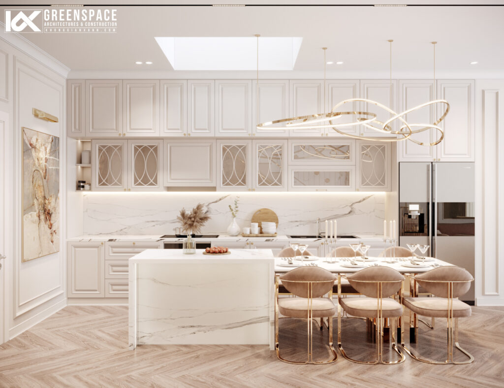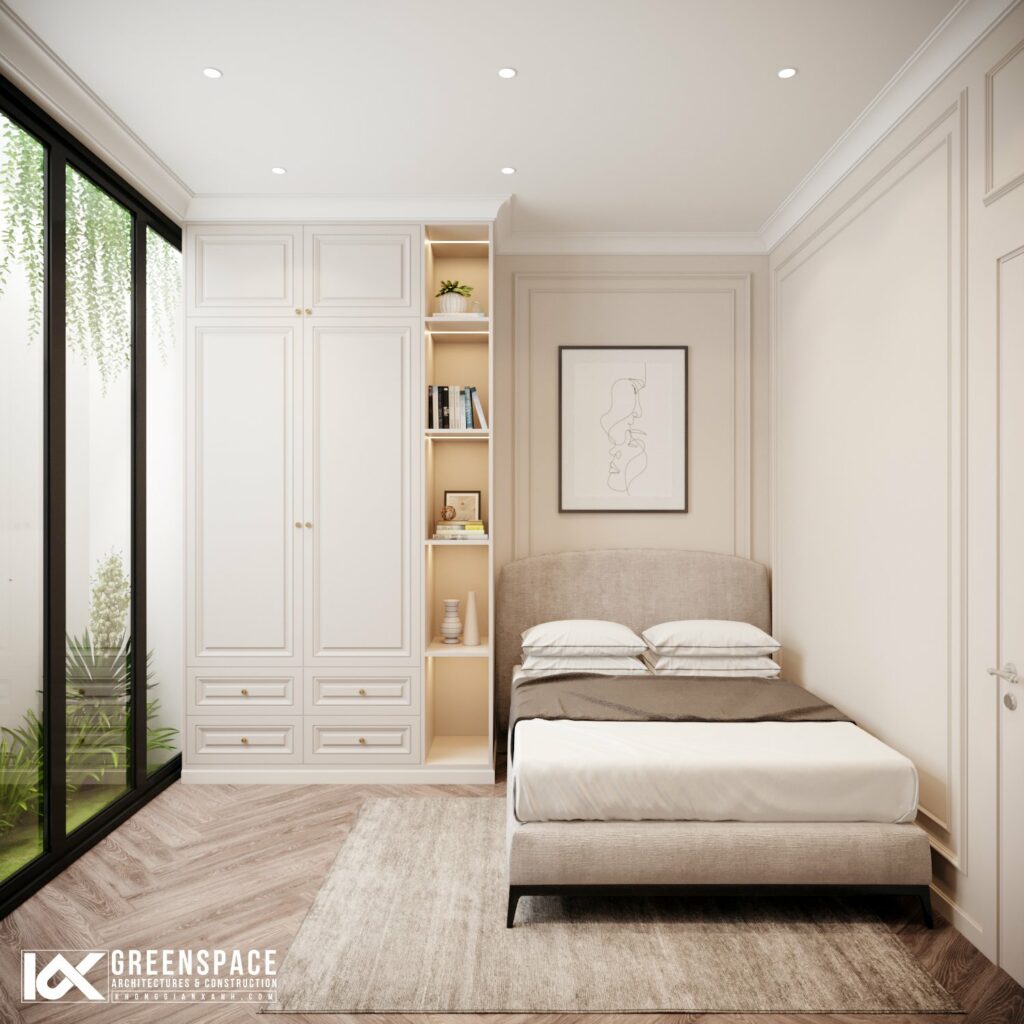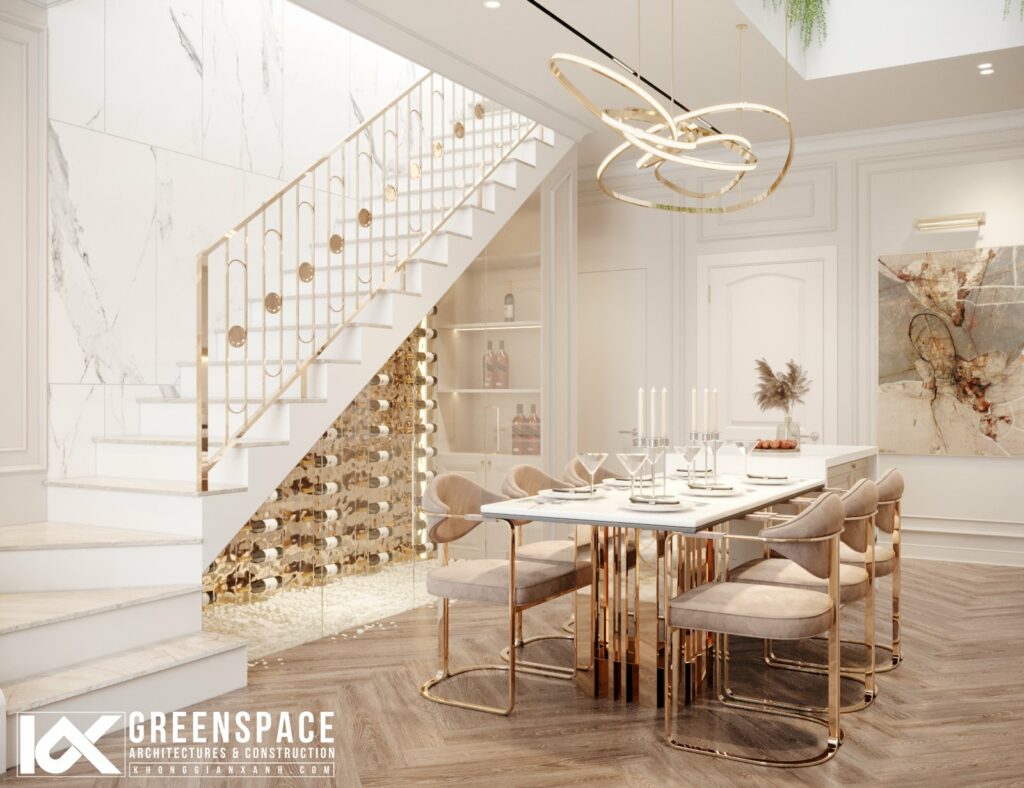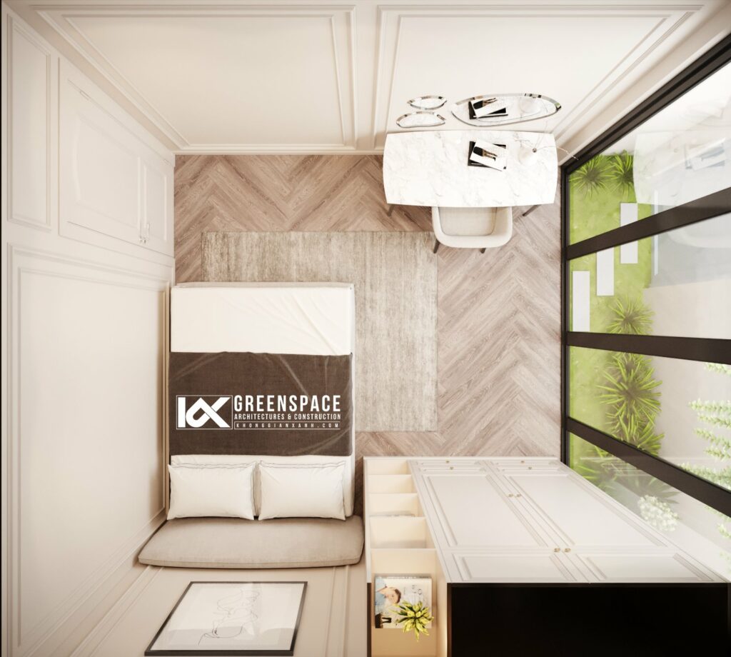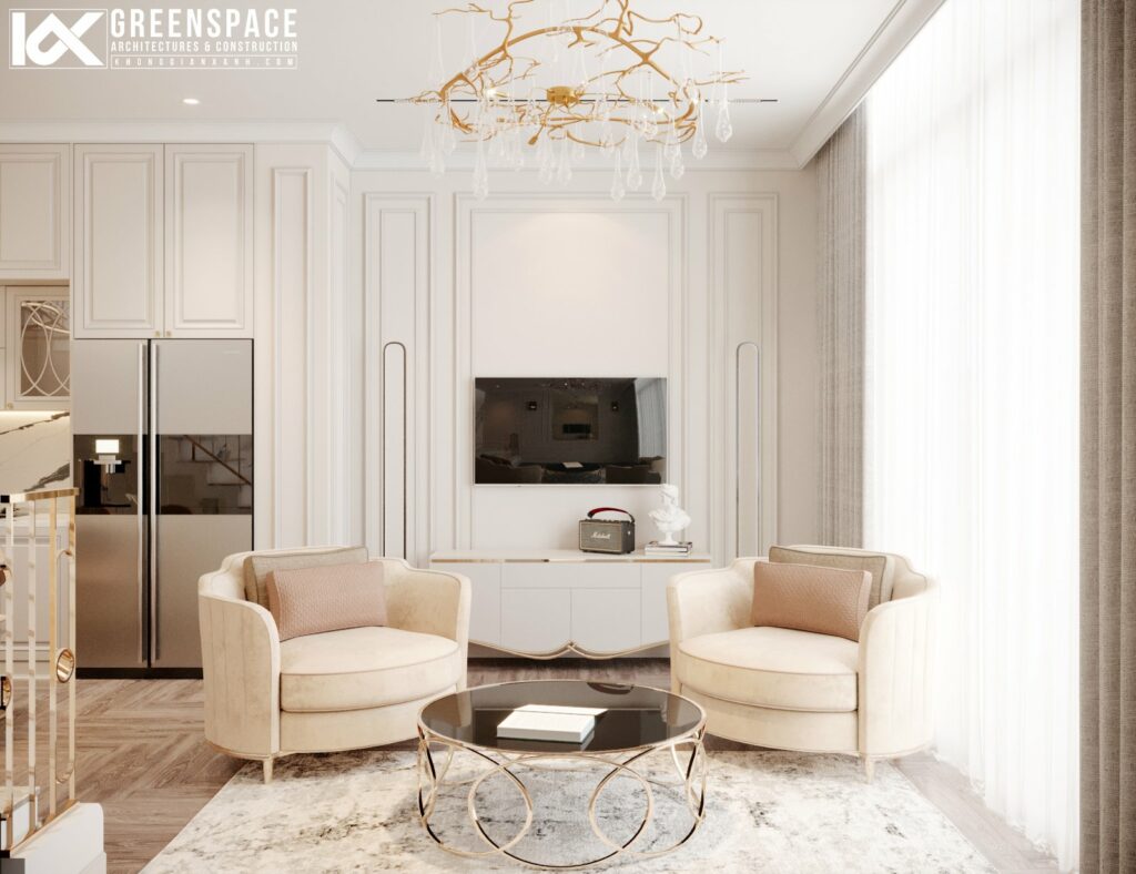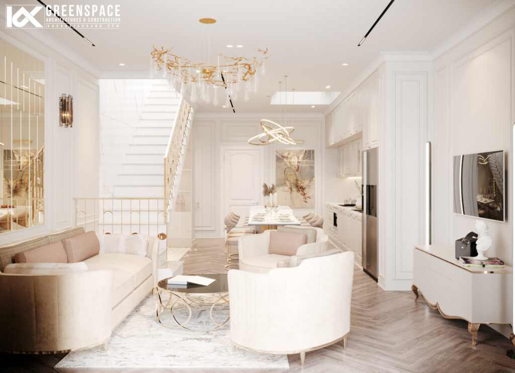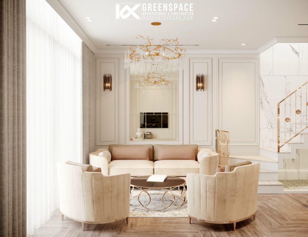 Nhằm đảm bảo sự thống nhất cao nhất trong thiết kế không gian sống, đẹp và đồng bộ về ý tưởng chủ đề, vật liệu màu sắc, đặc biệt là tối ưu chi phí đầu tư; gia đình anh H. đã ký hợp đồng thiết kế thi công kiến trúc – nội thất trọn gói với Không Gian Xanh.