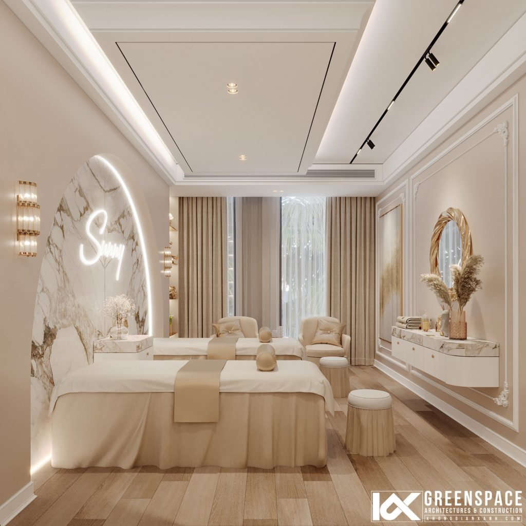 – Không gian thiết kế spa đẹp tiện nghi, thuận lợi cho các hoạt động của chuyên viên spa.