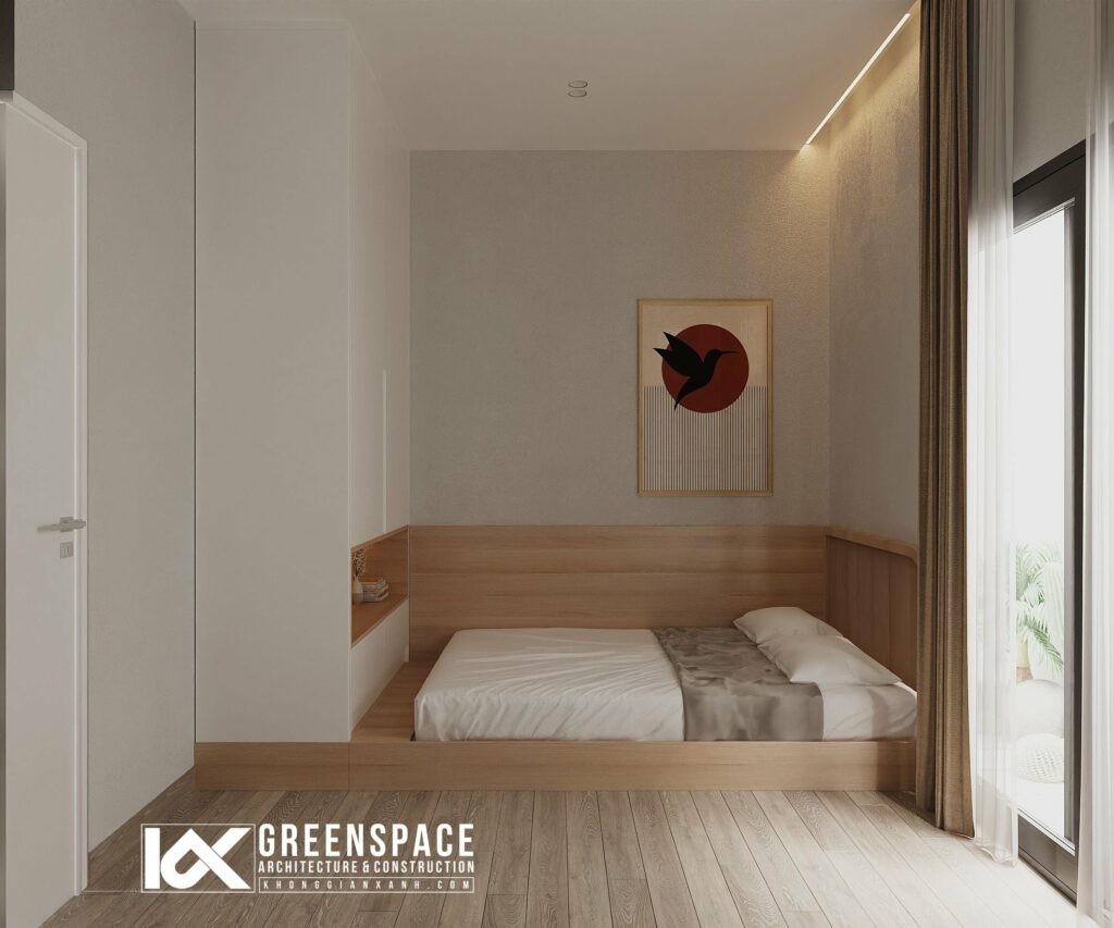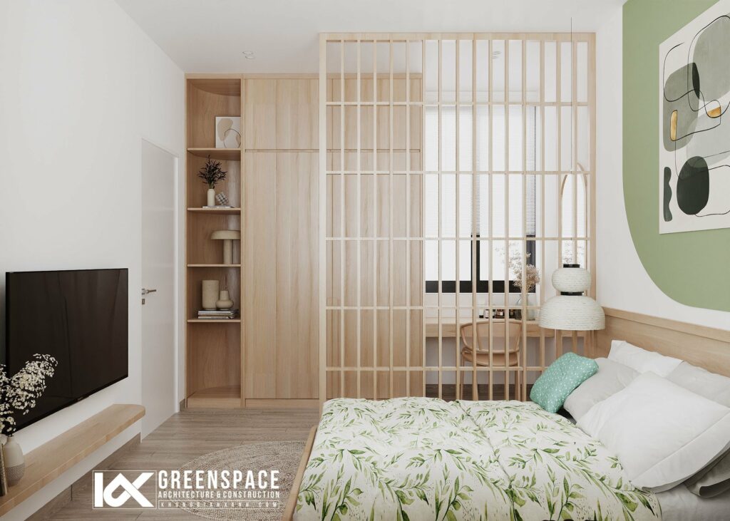 Phòng ngủ có diện tích nhỏ được tối ưu bằng cách phân bổ không gian hợp lý kết hợp nội thất đa năng.
