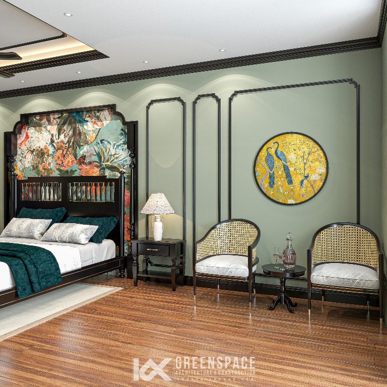 Đối với phong cách Indochine sẽ ưu tiên các chất liệu đậm chất Á Đông như tre, nứa, gỗ… Thay vì sử dụng các vật liệu hiện đại. Không Gian Xanh cũng dùng các chất liệu quen thuộc như gỗ, tre, nứa… Nhằm tôn lên nét đẹp truyền thống đậm chất Đông Dương cho căn phòng.
