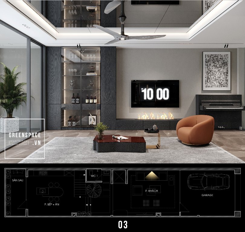 Cuối cùng Không Gian Xanh chốt được phương án hoàn thiện với tone màu được phối theo hướng khai thác nhiều hơn các tone màu trầm, đảm bảo được sự nhã nhặn và hài hòa với tổng thể.