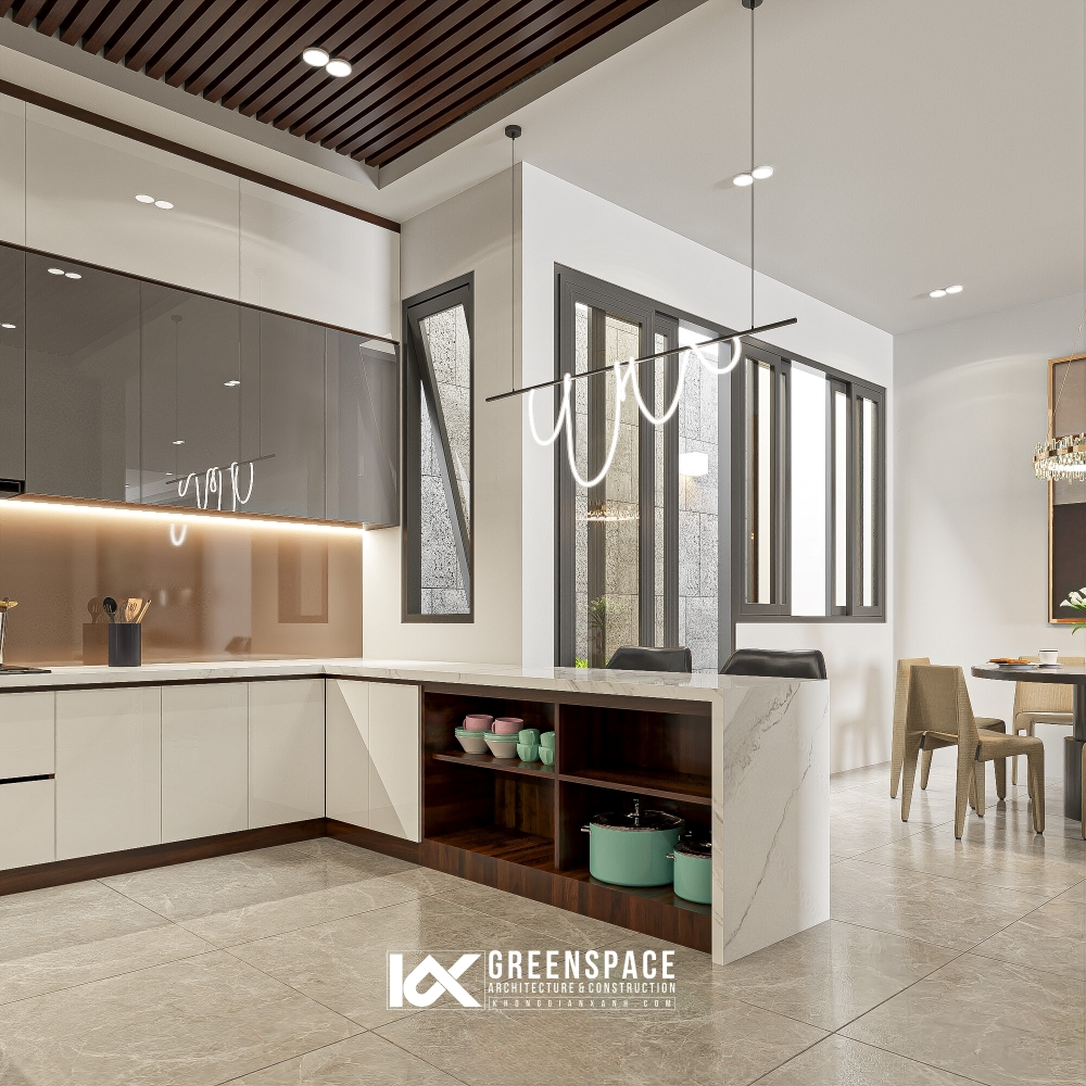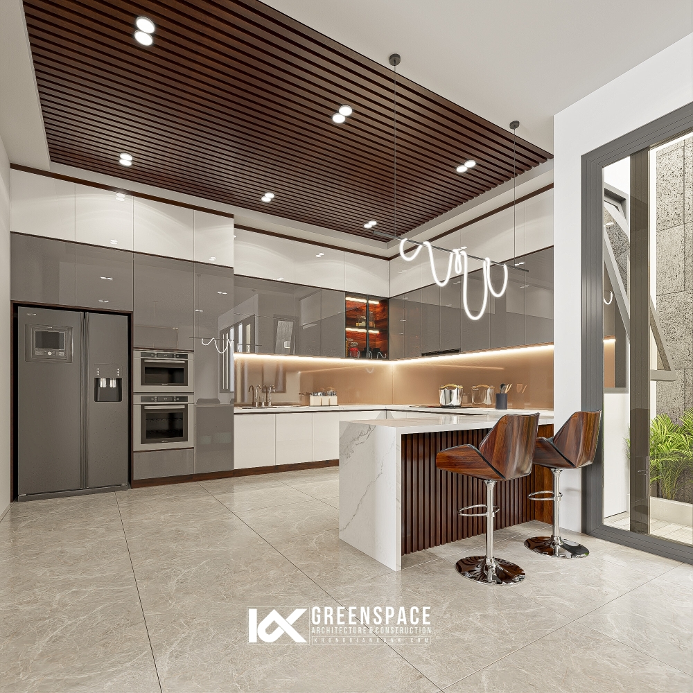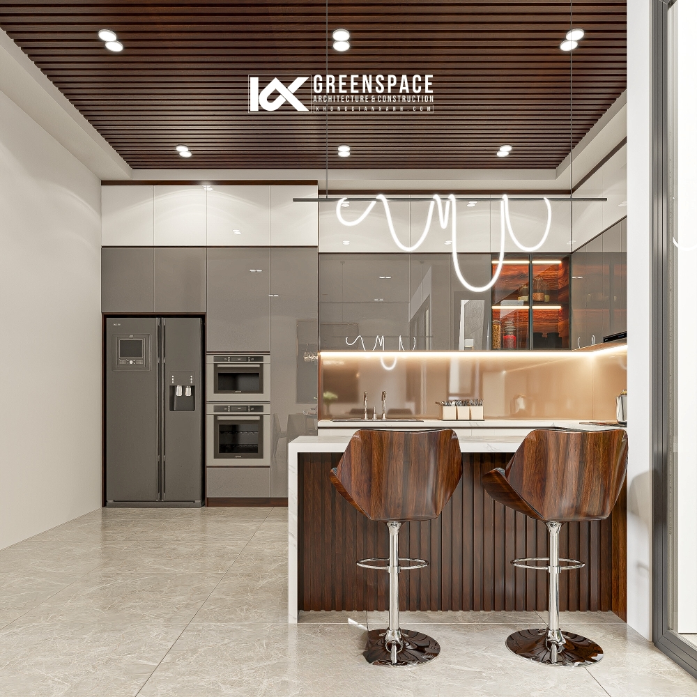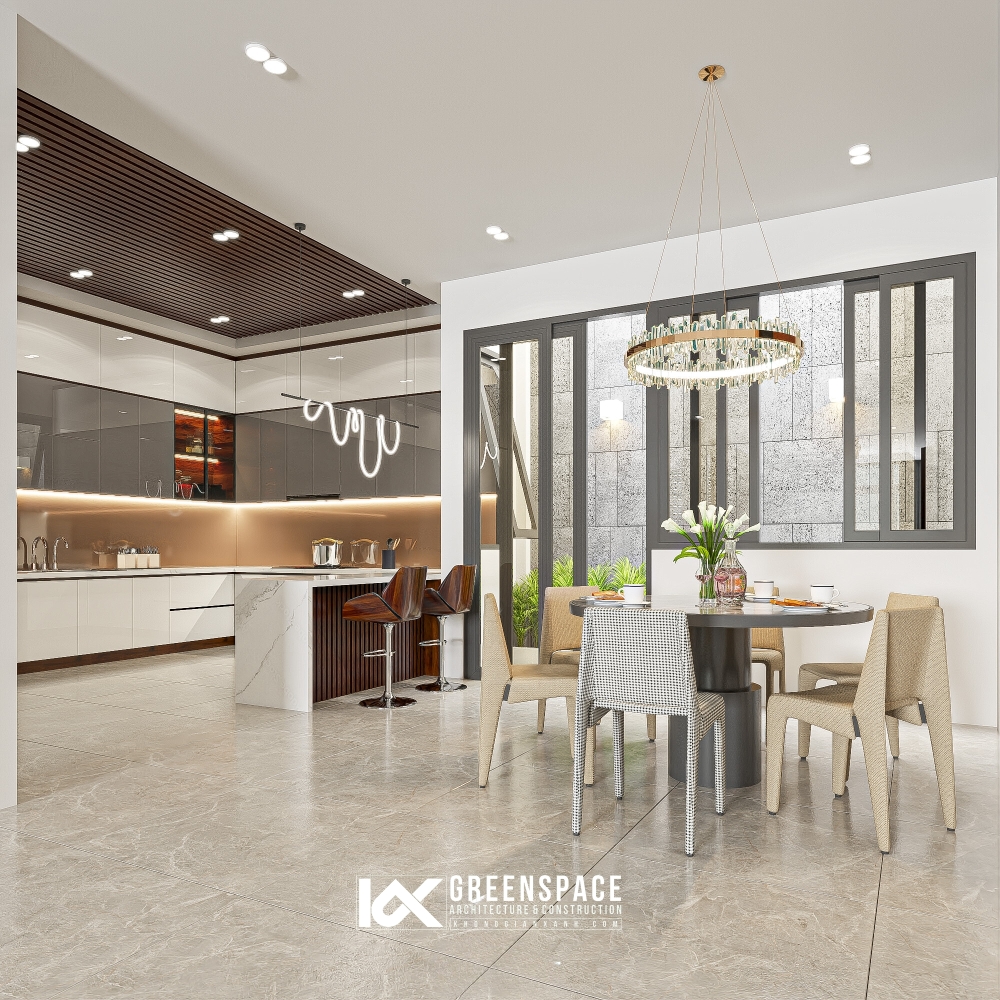 Thiết kế nội thất phòng khách liền bếp dần trở thành xu hướng phổ biến, nhất là những ngôi nhà có diện tích nhỏ. Việc kết hợp không gian khách bếp không chỉ tối ưu diện tích mà còn đem đến nhiều tiện nghi cho gia chủ. Mời bạn tham khảo thiết kế khách bếp không gian mở trong bài viết dưới đây. Một thiết kế nội thất nhà phố do Không Gian Xanh thực hiện.