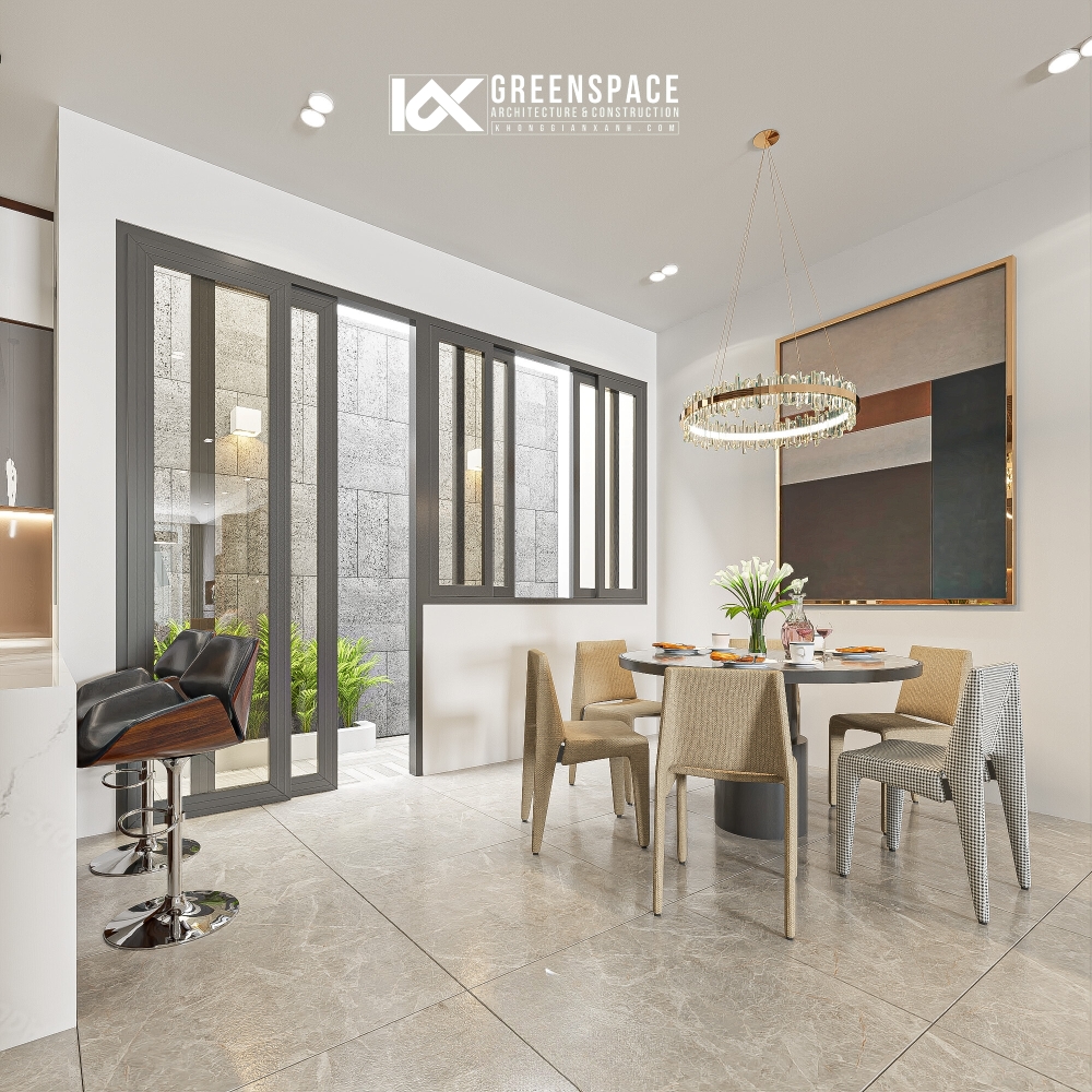 Bên trên là công trình nội thất phòng khách liền bếp do đội ngũ Không Gian Xanh thiết kế. Bạn có thể tham khảo thêm các dự án nhà phố của Không Gian Xanh trên website.