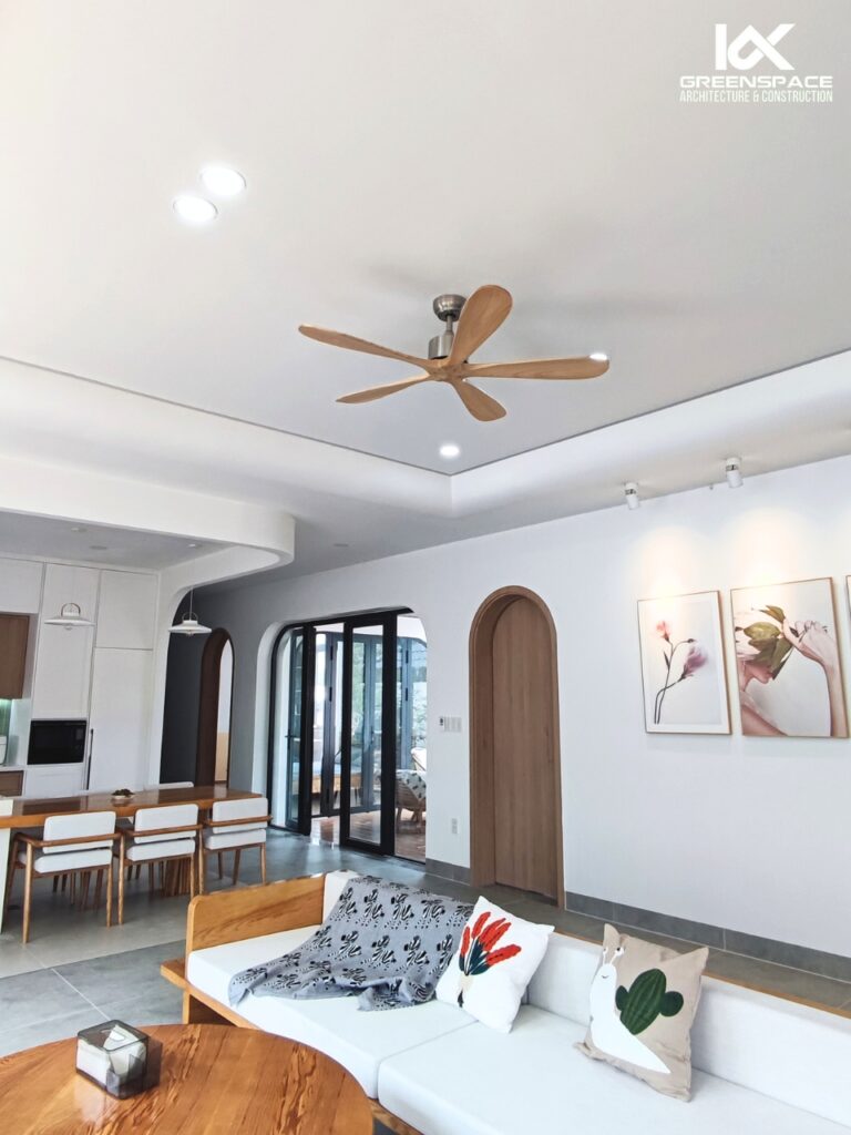 Không gian nội thất bên trong đi theo hướng đơn giản, gọn gàng như tính cách của chủ nhân. Thiết kế này cũng mang tới cho căn biệt thự trải nghiệm không gian thoáng đãng. Để cảm xúc được tự do bay bổng, rời xa những ồn ào phố thị và an trú tại tổ ấm của riêng mình.