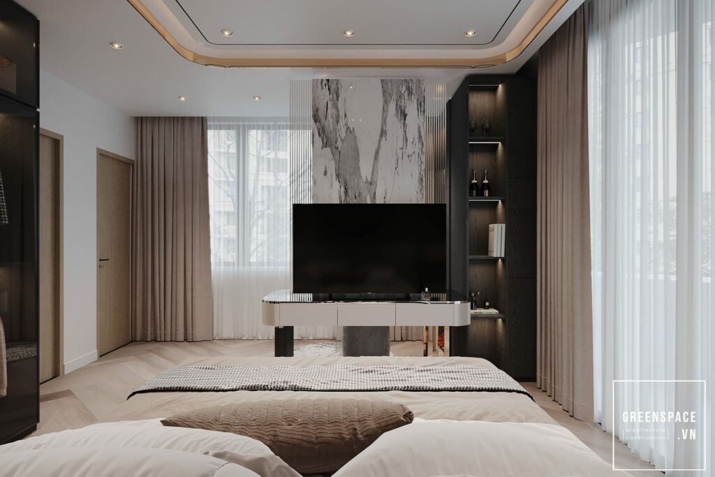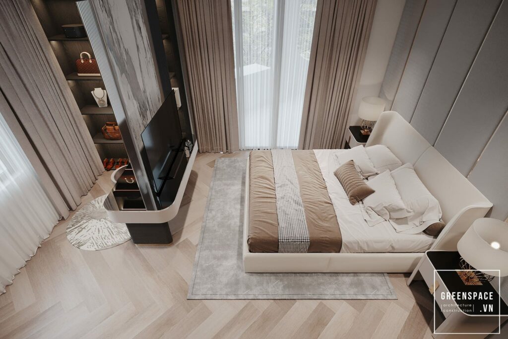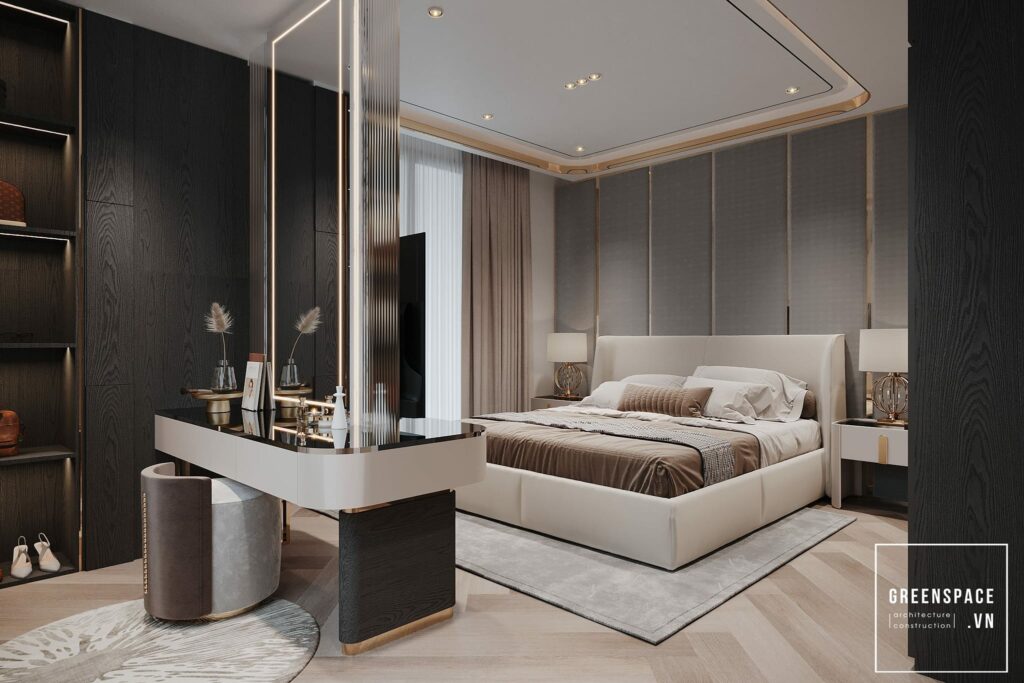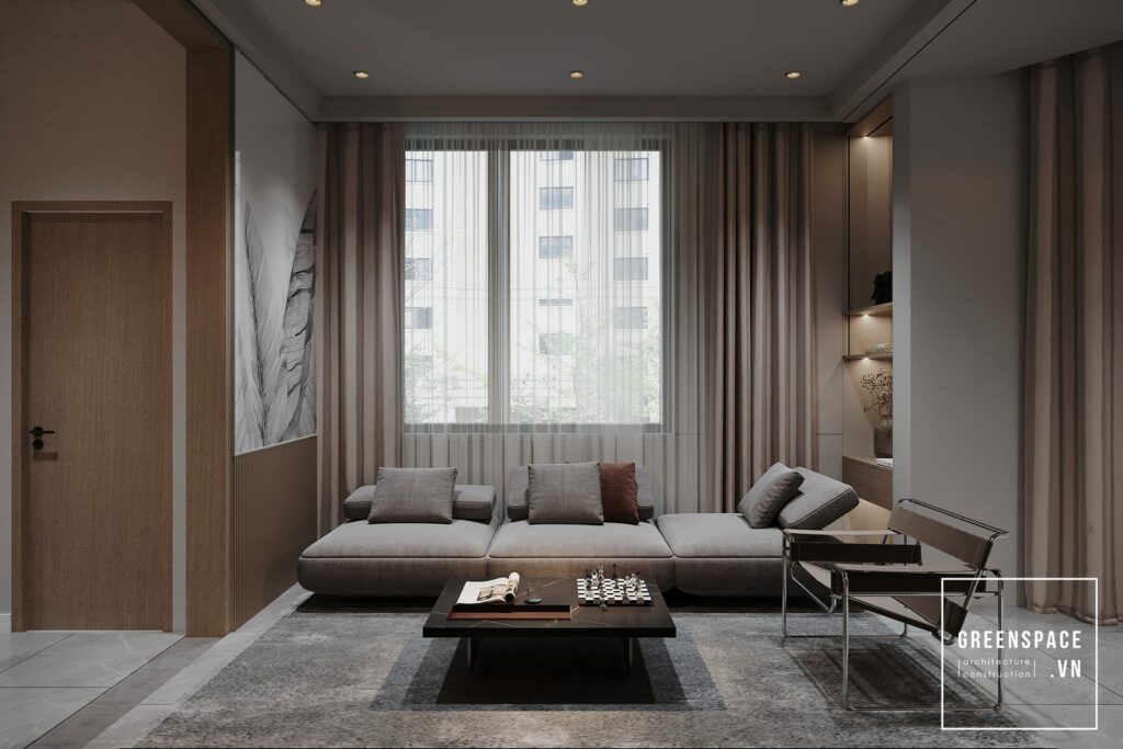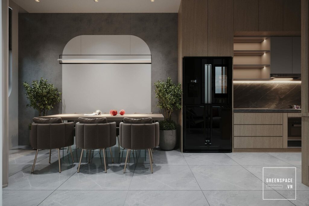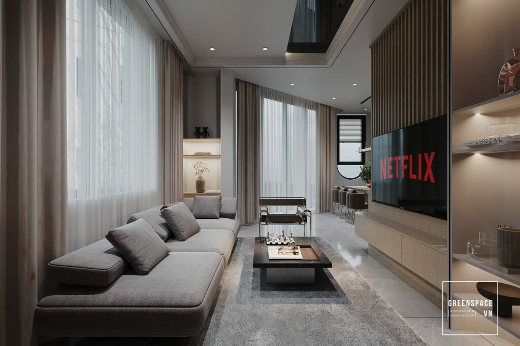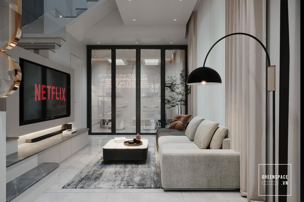 Kiến trúc sư Không Gian Xanh nghiên cứu và lên phương án thiết kế phân chia không gian giữa nơi ở và kinh doanh để đảm bảo sự riêng tư và tính chuyên nghiệp cho từng khu vực. Đồng thời vẫn giữ được sự đồng bộ trong phong cách thiết kế của tổng thể ngôi nhà.