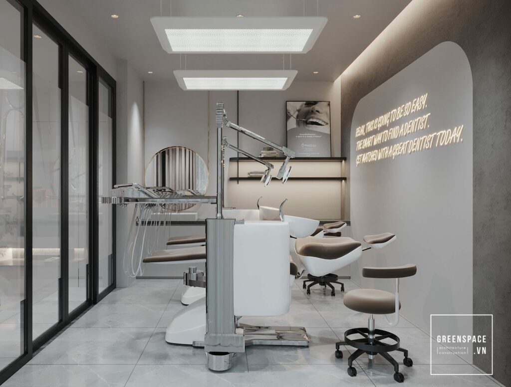 Thiết kế phòng khám nha khoa phải chú trọng đảm bảo các vấn đề về sức khỏe, yêu cầu về sự thông thoáng, sạch sẽ và vô trùng. Không gian phòng khám nha khoa sẽ được chia làm các phòng nhỏ với đồ nội thất, thiết bị ý tế chuyên dụng.