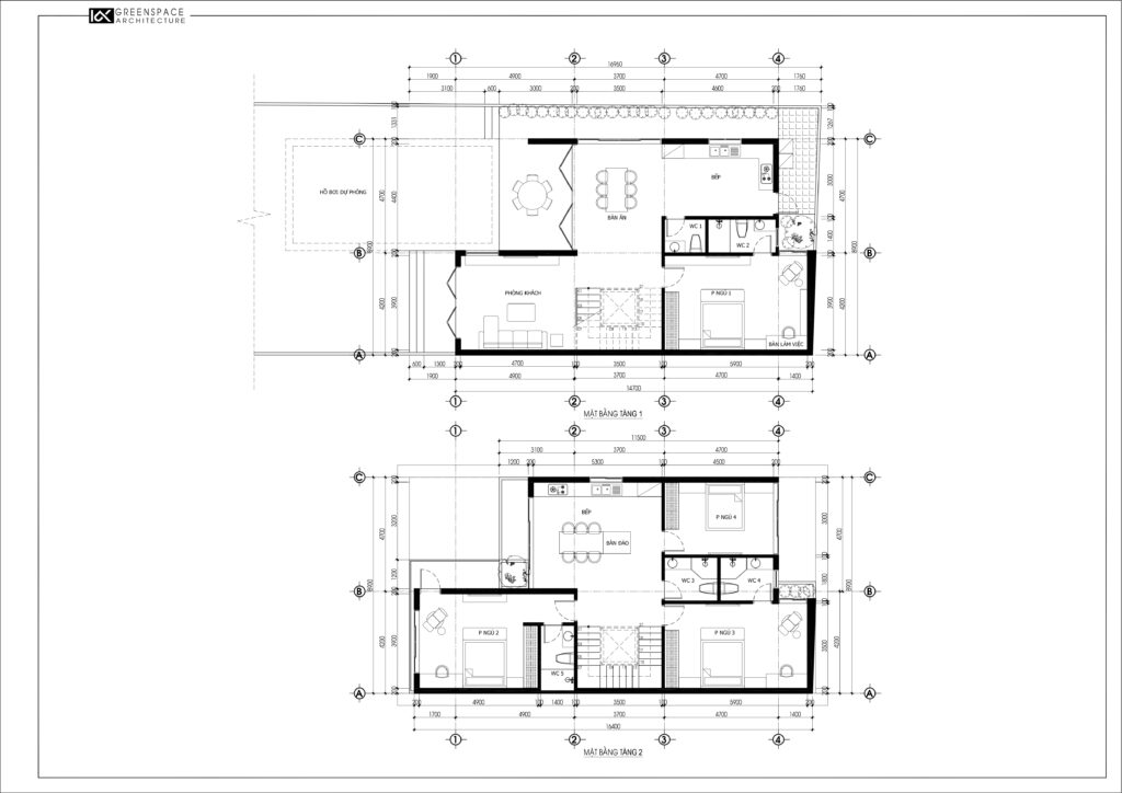 Việc sống trong các khu đô thị phát triển mạnh như Bà Rịa Vũng Tàu đòi hỏi khi thiết kế biệt thự có diện tích không quá lớn thì kiến trúc sư vẫn phải đảm bảo đủ không gian cho các hoạt động gia đình. Do đó, thiết kế 2 tầng giúp phân bố không gian một cách hợp lý, từ phòng khách, bếp ăn đến các phòng ngủ và phòng làm việc. Quan sát kỹ mặt bằng công năng của dự án này, bạn sẽ thấy ở cả 2 tầng đều được thiết lập hệ thống phòng bếp. Điều này giúp mang đến nhiều tiện ích trong quá trình sinh hoạt của cả gia đình.