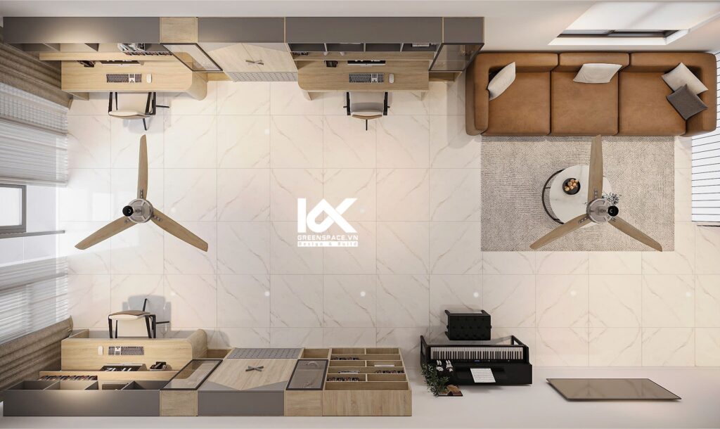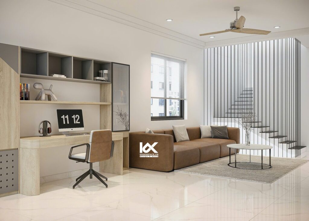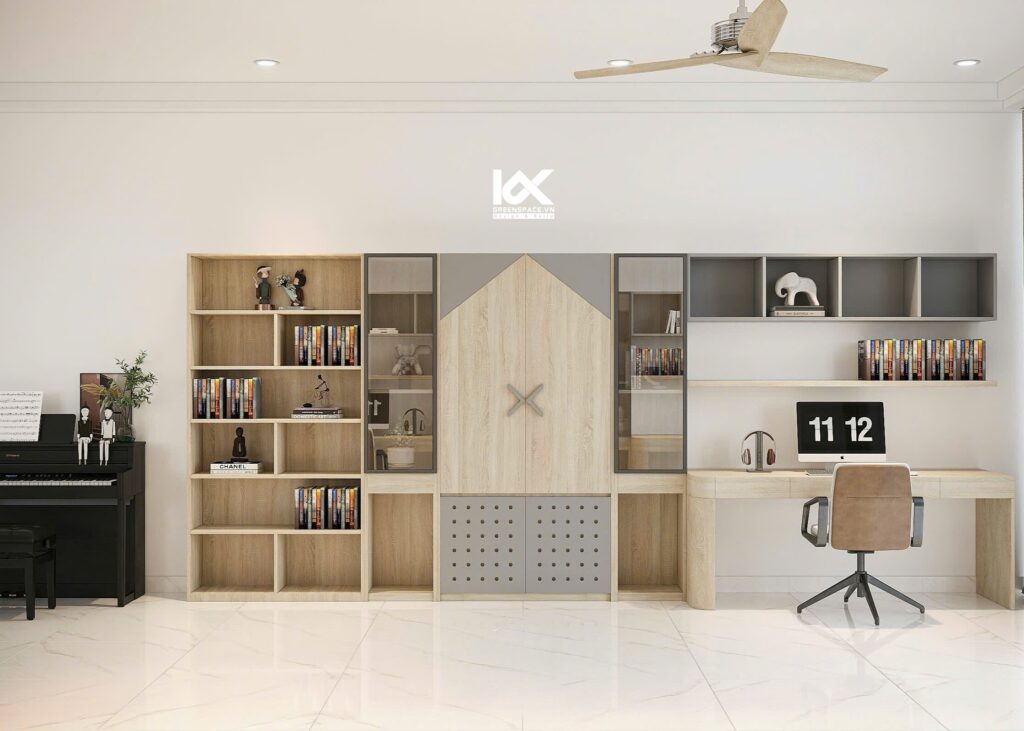 Bằng việc phân chia khu vực học tập tiện nghi và thông minh, KGX đã tạo ra một môi trường học tập thoải mái ngay tại phòng khách. Điều này giúp tiết kiệm diện tích, đồng thời tạo cơ hội cho cả gia đình có thêm thời gian quây quần bên nhau trong khi vẫn đảm bảo hiệu quả học tập cho các con.