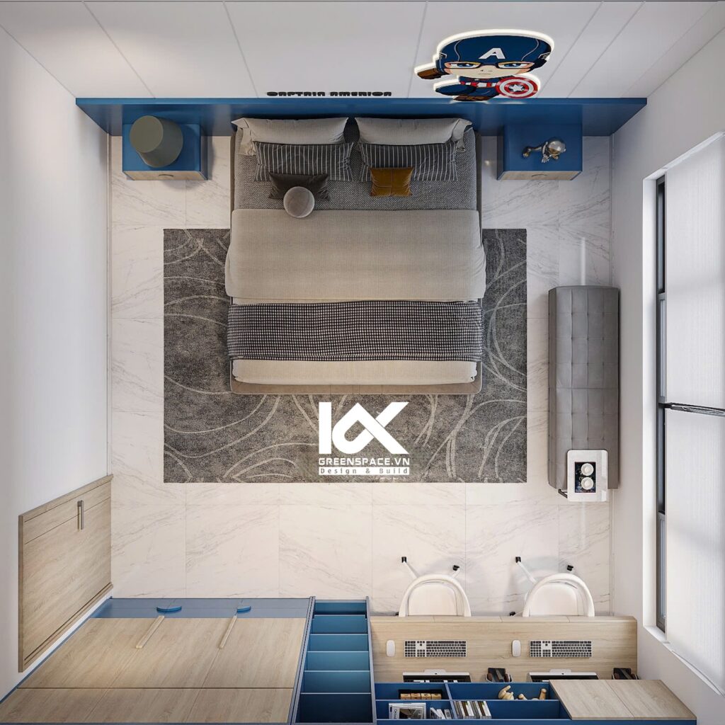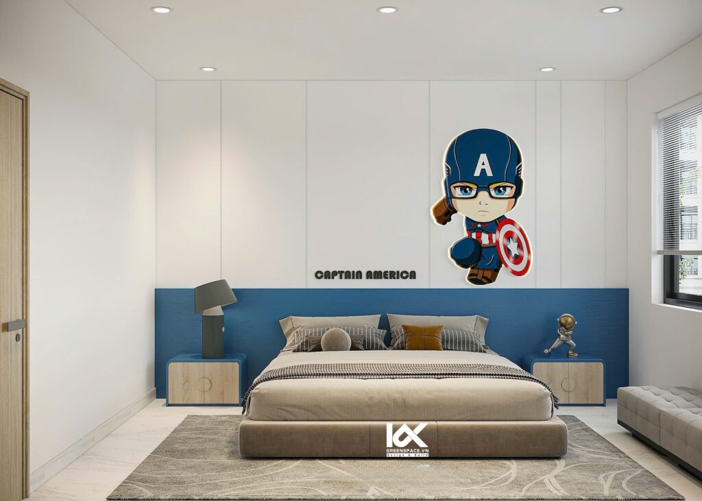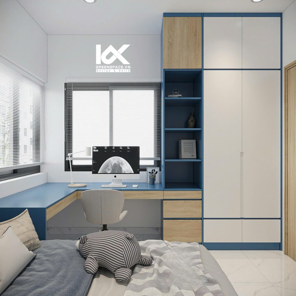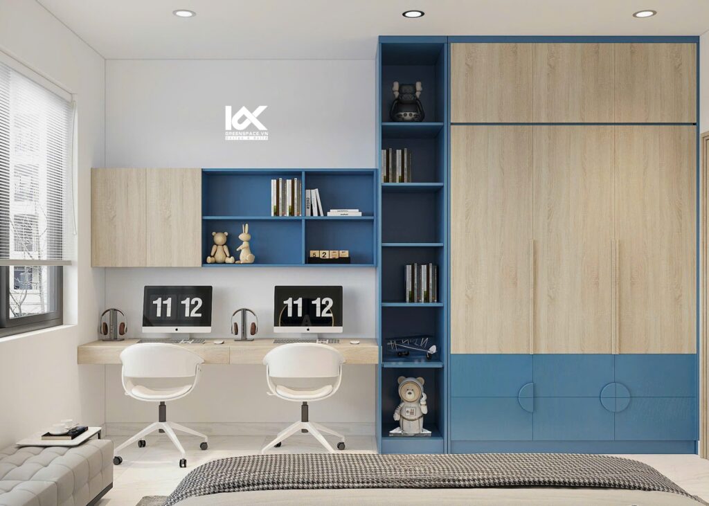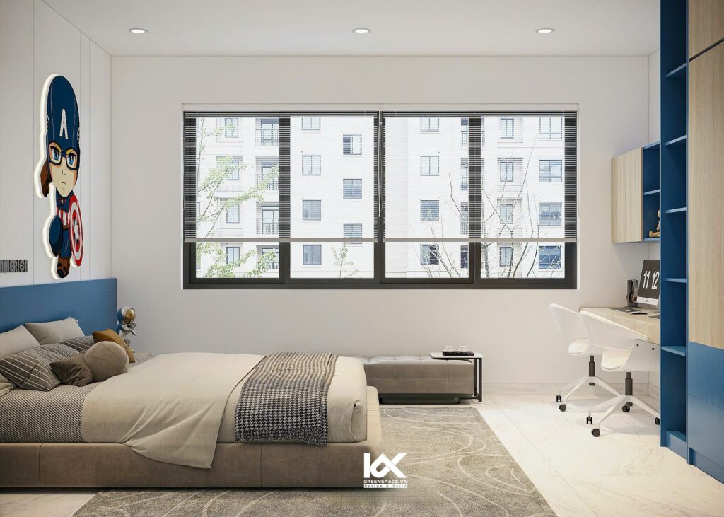 Hai phòng ngủ còn lại được thiết kế dành riêng cho các con với những đường nét tinh tế và cách bài trí phù hợp với lứa tuổi. Mỗi căn phòng đều được chăm chút kỹ lưỡng. Từ lựa chọn màu trắng và xanh dương tươi sáng đến các họa tiết vui nhộn, góp phần kích thích trí tưởng tượng của trẻ. Không gian được sắp xếp gọn gàng, đảm bảo các bé có môi trường sống an toàn và phát triển toàn diện. Đây là nơi các con có thể học tập, vui chơi và lớn lên một cách lành mạnh trong bầu không khí ấm áp của gia đình.