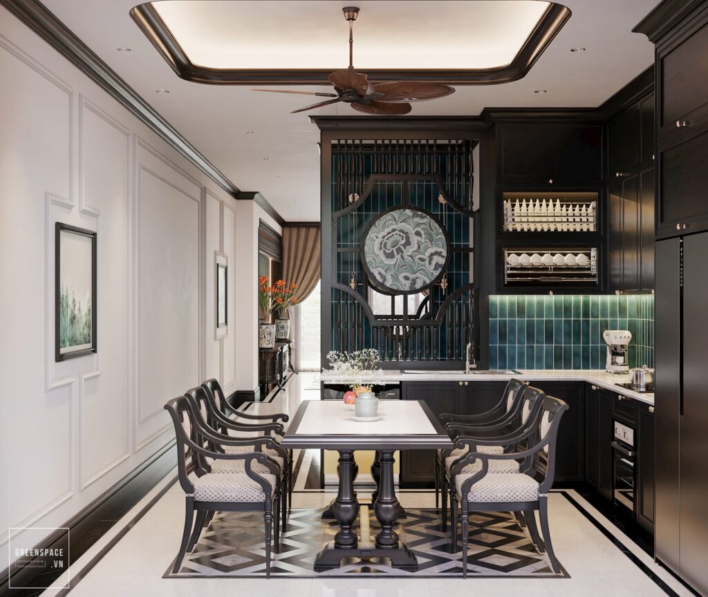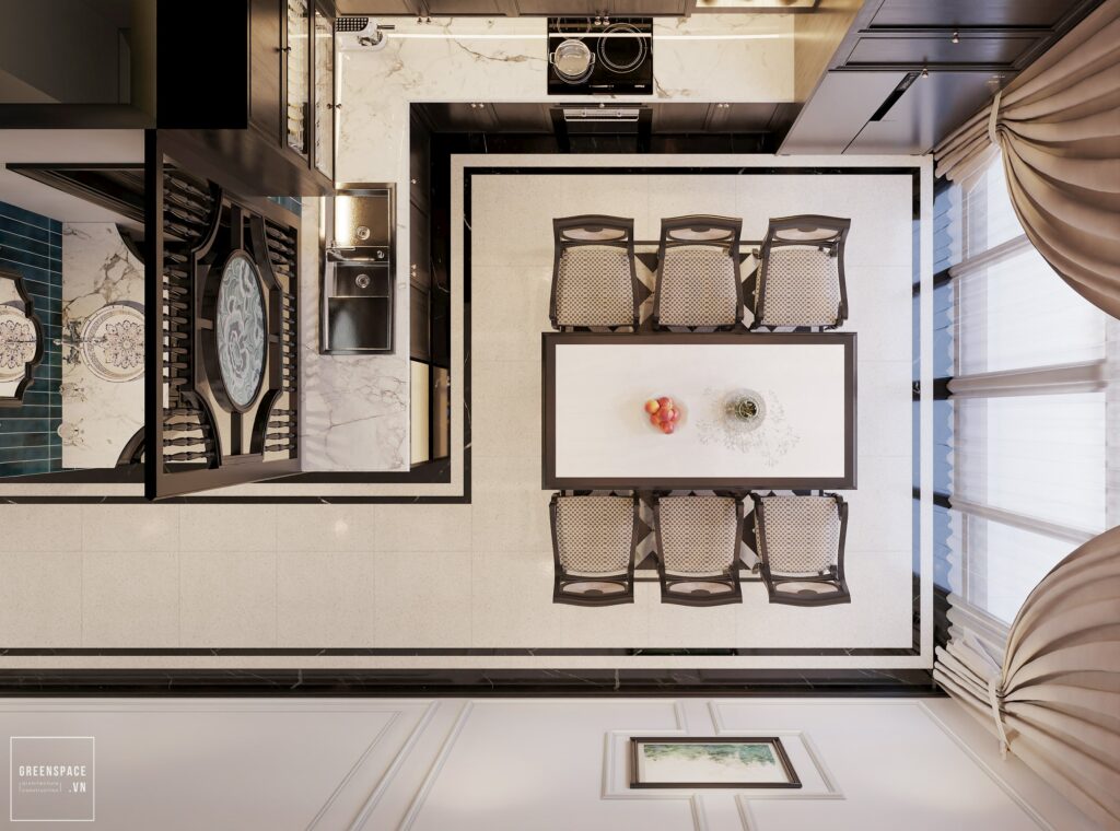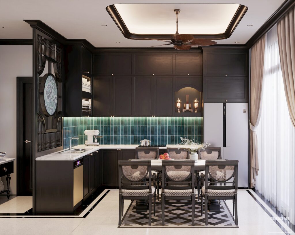 Không gian giao thoa giữa phòng khách và phòng bếp