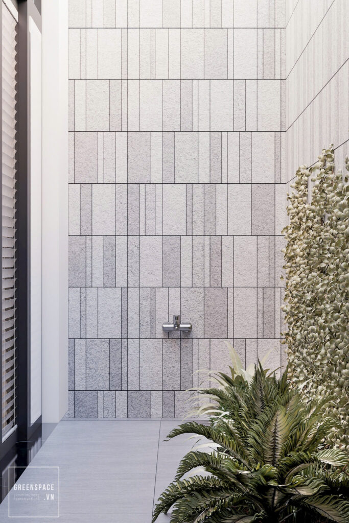 Dự án tổng cộng gồm 4 tầng, toàn bộ đều được thiết kế theo phong cách Indochine. Trong đó, tầng trệt là không gian dành cho gara, khách bếp. Các tầng trên là không gian ngủ nghỉ, thư giãn. Trầng trên cùng là sân thượng, khu giặt đồ và không gian thờ cúng.