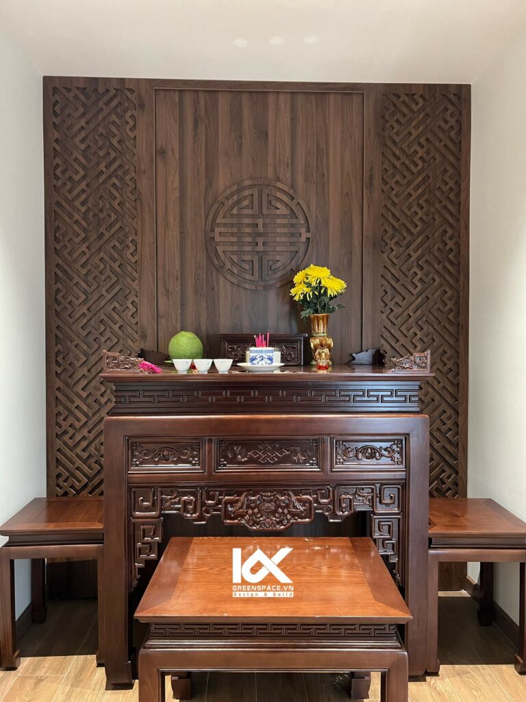 Kiểu thiết kế nội thất phòng thờ hiện đại đã giúp tối ưu không gian thờ phụng mà vẫn đảm bảo đầy đủ tiện ích cho gia chủ của dự án thi công trọn gói nhà ở Barya Citi này.