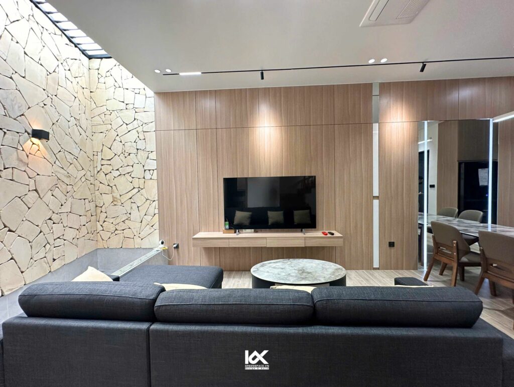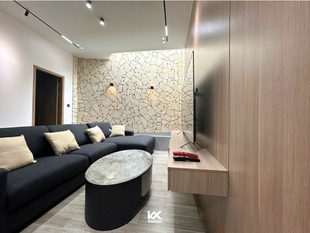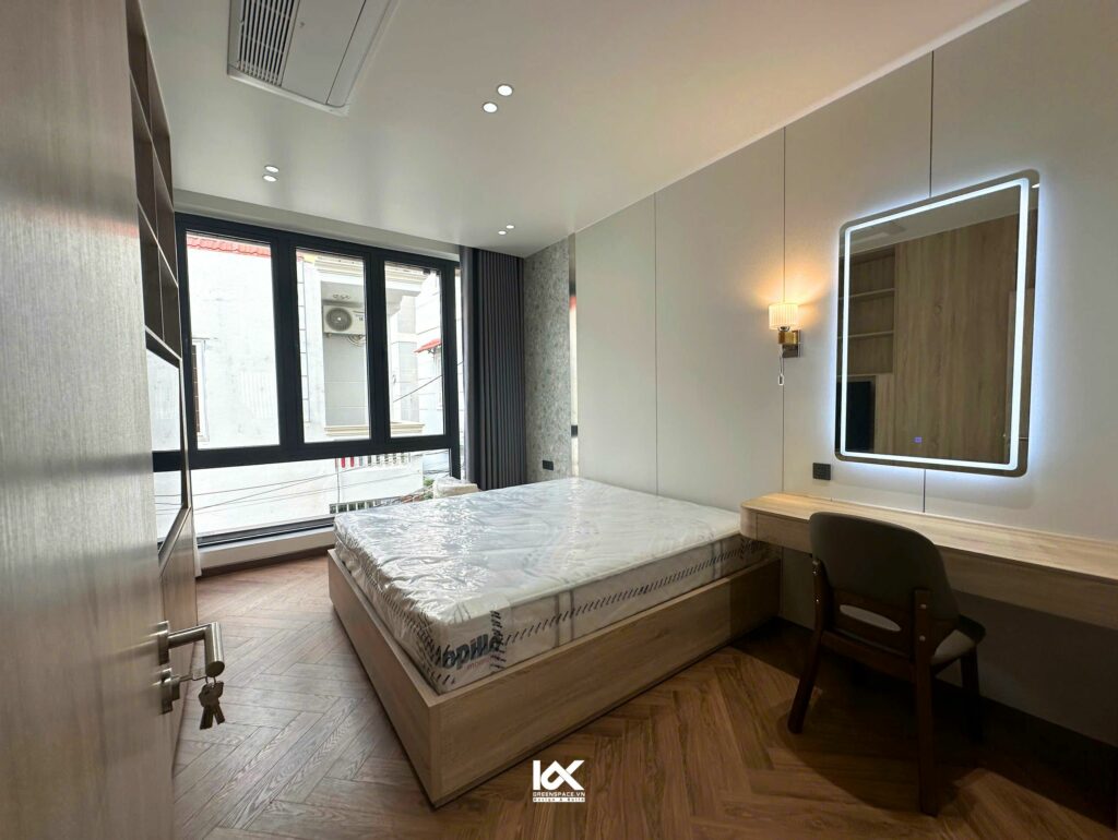 Nội thất của căn phòng được thiết kế một cách tỉ mỉ, mang đến sự hài hòa hoàn hảo giữa màu sắc và chất liệu. Mỗi món đồ nội thất không chỉ tối giản mà còn toát lên vẻ đẹp tinh tế, thể hiện sự chọn lọc kỹ càng để phù hợp với tổng thể không gian. Sự kết hợp giữa các yếu tố này không chỉ mang lại cảm giác dễ chịu mà còn giúp thể hiện gu thẩm mỹ tinh tế của chủ nhân ngôi nhà. Mỗi góc nhỏ trong căn phòng đều được chăm chút, tạo ra một không gian sống đầy cảm hứng, vừa thoải mái vừa ấn tượng, phù hợp với xu hướng hiện đại mà vẫn giữ được sự gần gũi và ấm áp.