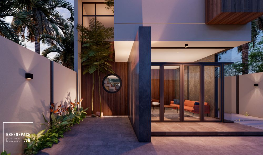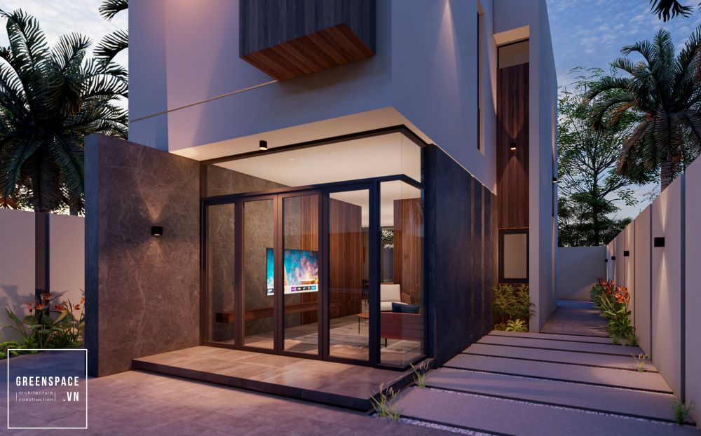 Biệt thự mang phong cách hiện đại với đường nét tối giản và gam màu trung tính. Mặt tiền sử dụng kính lớn tạo không gian mở và đón ánh sáng tự nhiên. Gỗ và đá tự nhiên kết hợp hài hòa, mang lại sự sang trọng.