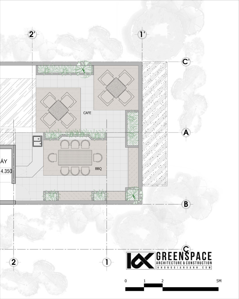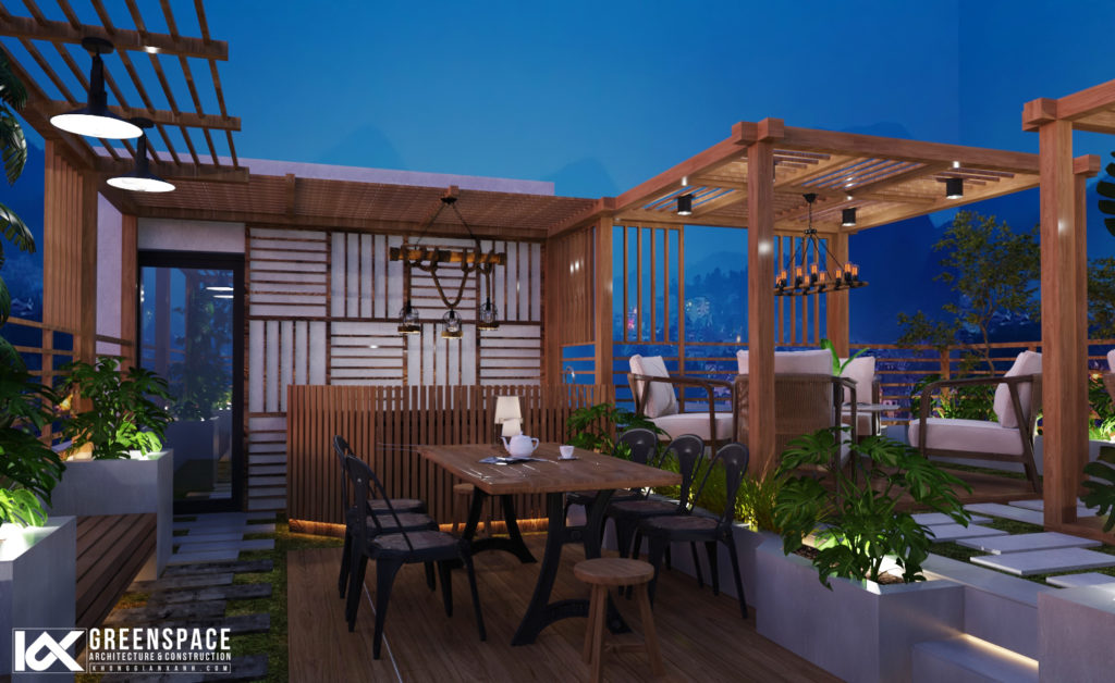Tọa lạc trên tầng thượng của dựa án nhà ở cho thuê 4 tầng, phương án thiết kế đưa ra với hai công năng chính là cafe và BBQ ngoài trời. Đối tượng phục vụ là chủ nhà và các du khách đang lưu trú.