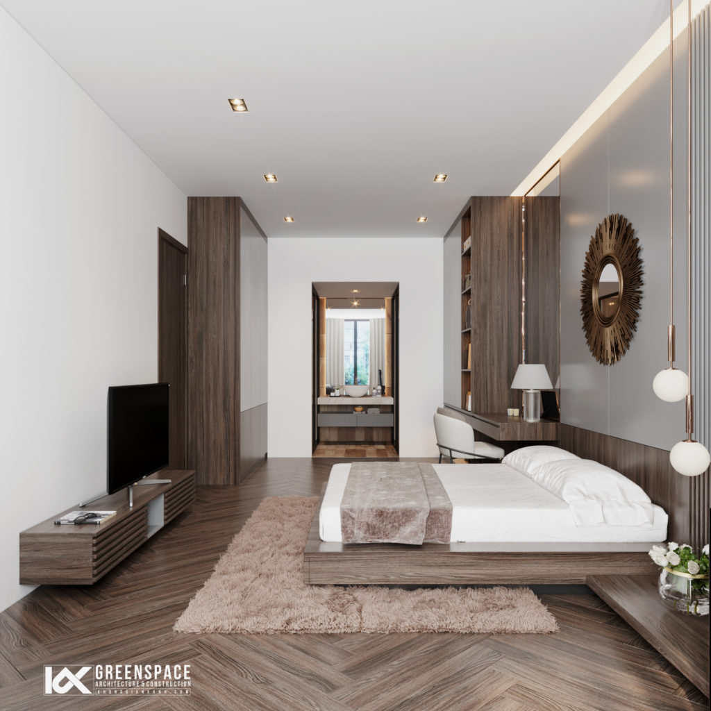 Dự án thiết kế nội thất biệt thự Quảng Nam với phong cách hiện đại với các đường nét hình khối tối giản, sử dụng gam màu nhã nhặn điểm xuyết một chút cá tính từ tone gỗ óc chó tạo nên một không gian thoáng đãng, hài hòa mà không đơn điệu!