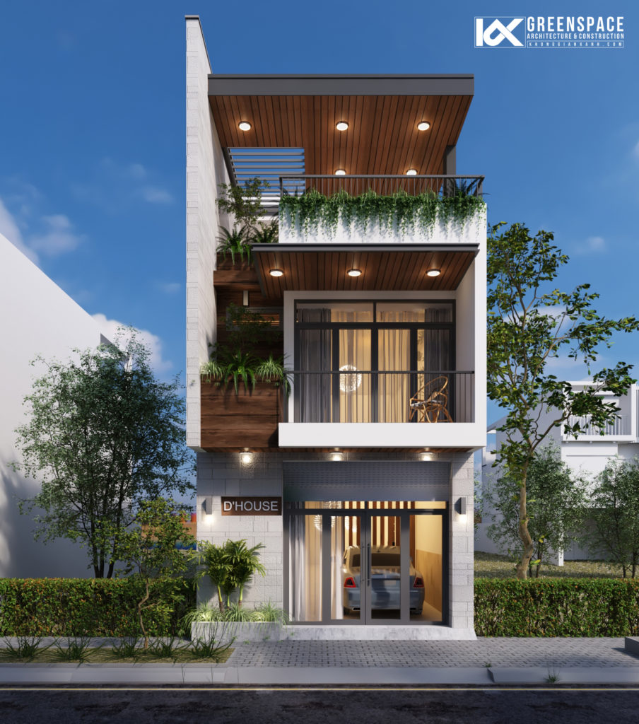 D’ House sử dụng những giải pháp đơn giản và hiệu quả cho dạng công trình thiết kế nhà phố mặt tiền 5m, mang lại những không gian sống tối ưu tận dụng năng lượng thiên nhiên và giải quyết các mặt hạn chế cho các dạng nhà phố hiện nay.