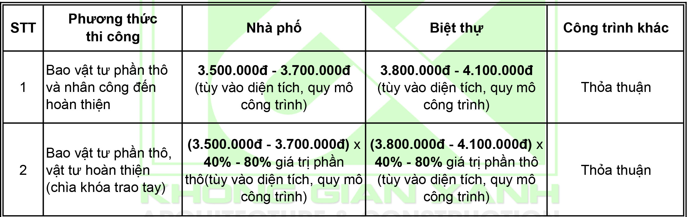 5. Phần diện tích không có mái che ngoại trừ sân trước và sân sau tính 50% diện tích (sân thượng không mái che, sân phơi, mái BTCT, làm BTCT).